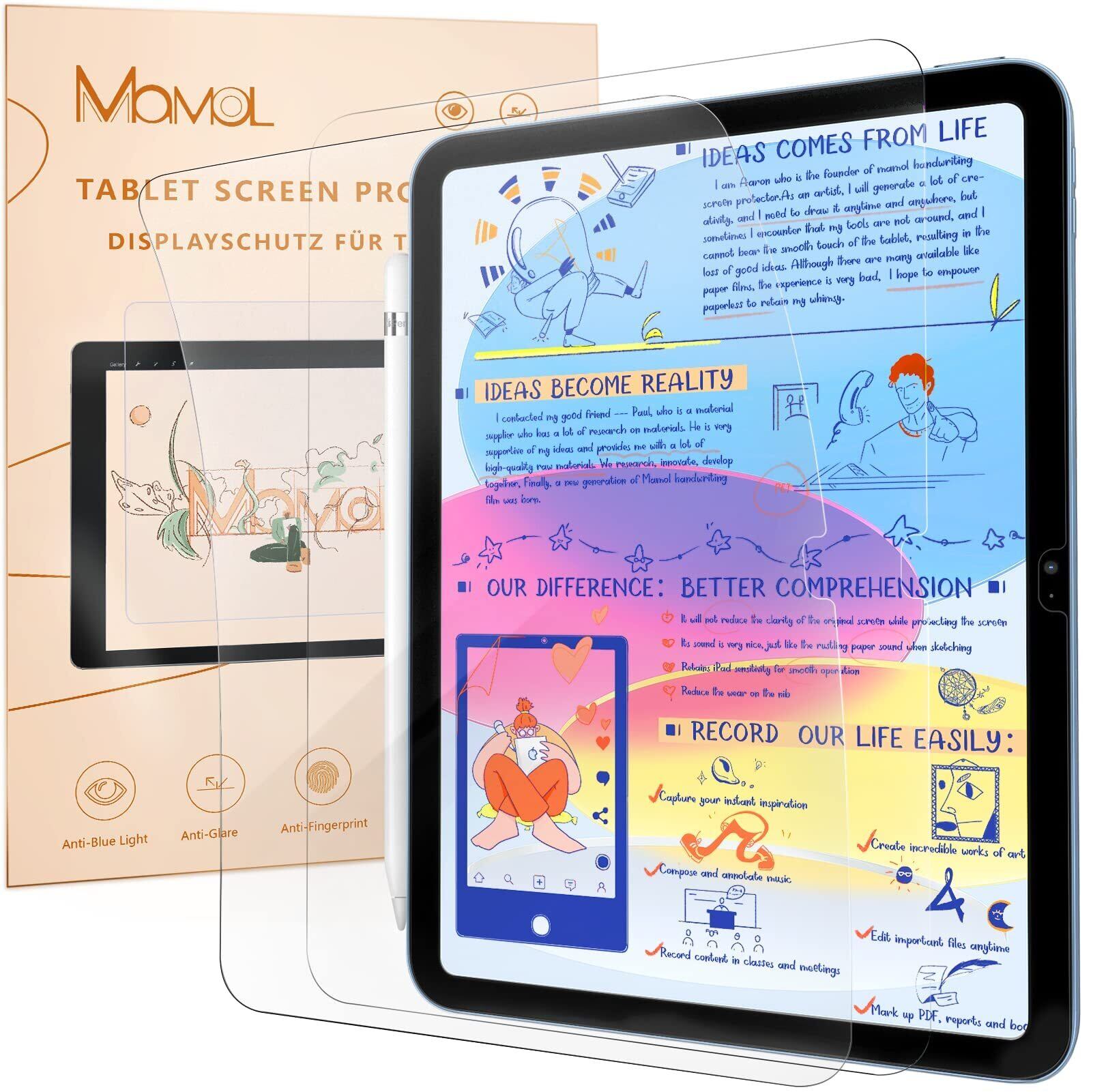 【2枚セット】ペーパーライクフィルム iPad 第11世代 (A16) 2025 用/iPad 第10世代 2022 用 フィルム 保護フィルム 紙のような描き心地 なめらか 反射低減 指紋防止 気泡防止 Mamol