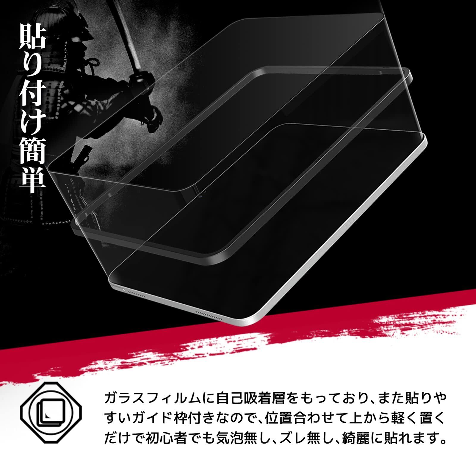 【貼り付け簡単】:アンチグレアガラスフィルム1枚、ガイドツール1枚、クリーニングクロス、ホコリ吸着シート、アルコールシートが付属しています。ガラスフィルムに自己吸着層をもっており、また貼りやすいガイド枠付きなので、位置合わせて上から軽く置くだけで初心者でも気泡無し、ズレ無し、綺麗に貼れます。