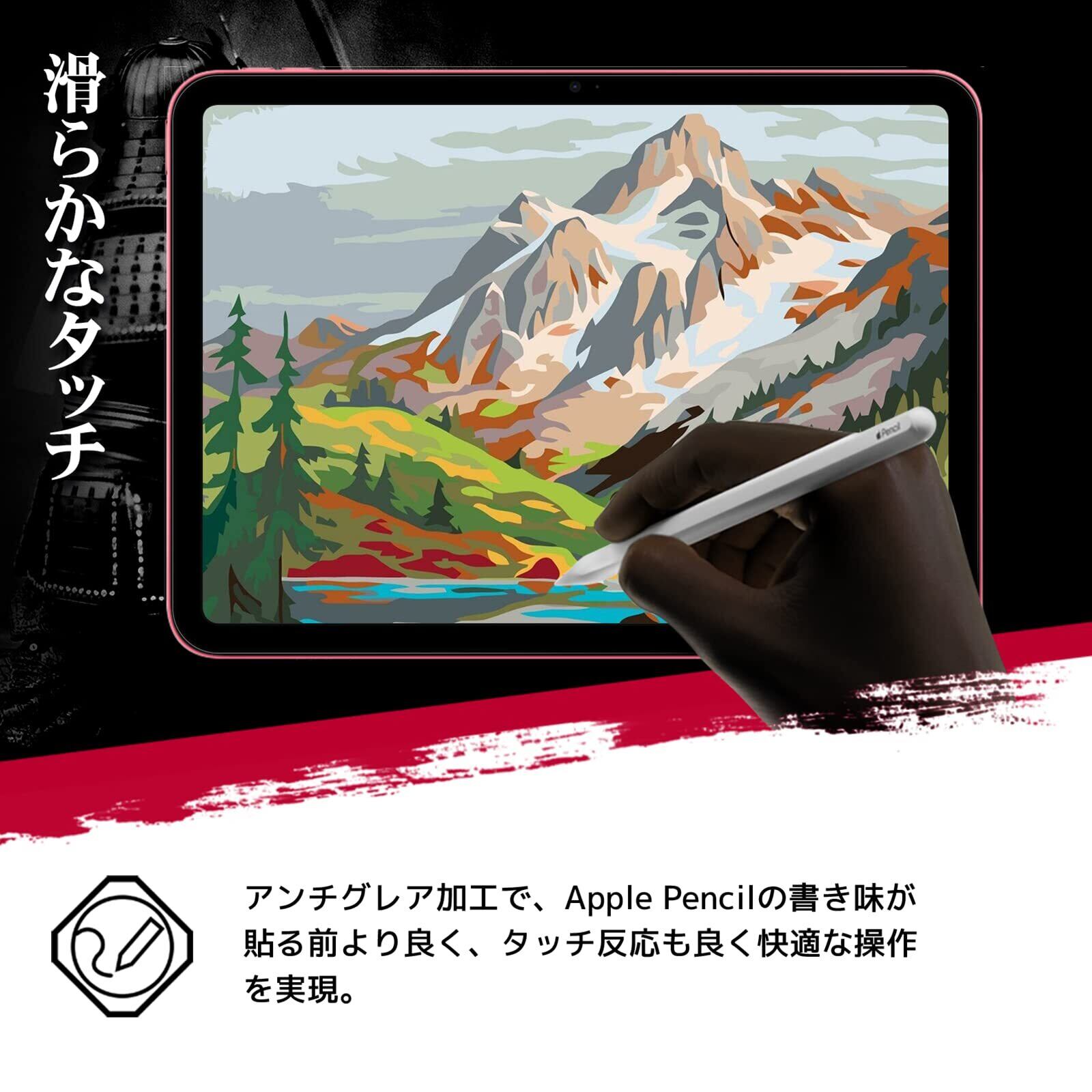 【指紋防止・高感度】:撥油コーティング加工され、ホコリや指紋など汚れにくくなっています。付着しても簡単に拭き取れます。高感度タッチで、Apple Pencilとの相性も良く、アンチグレア加工によりサラサラして紙のような書き心地で、日常でのメモや絵描きなどにも、フィルムなしの場合より書き心地が良く、快適な操作が実現します。