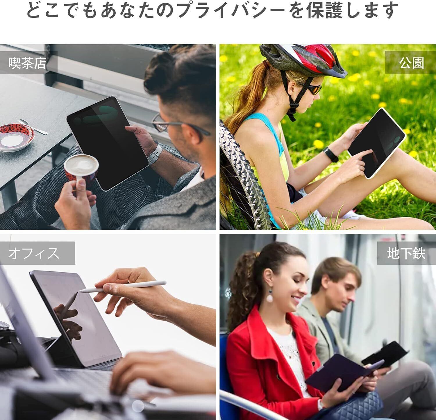四方からの覗き見防止。画面の真正面にいる人にしか見えないので、横からの覗き見を防止します。