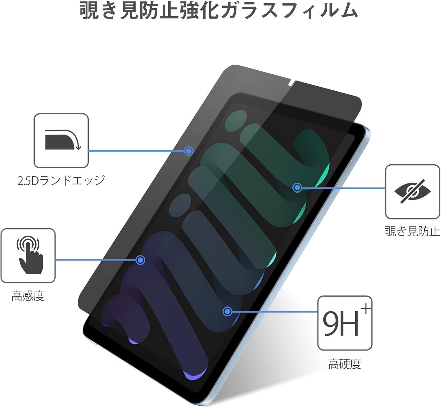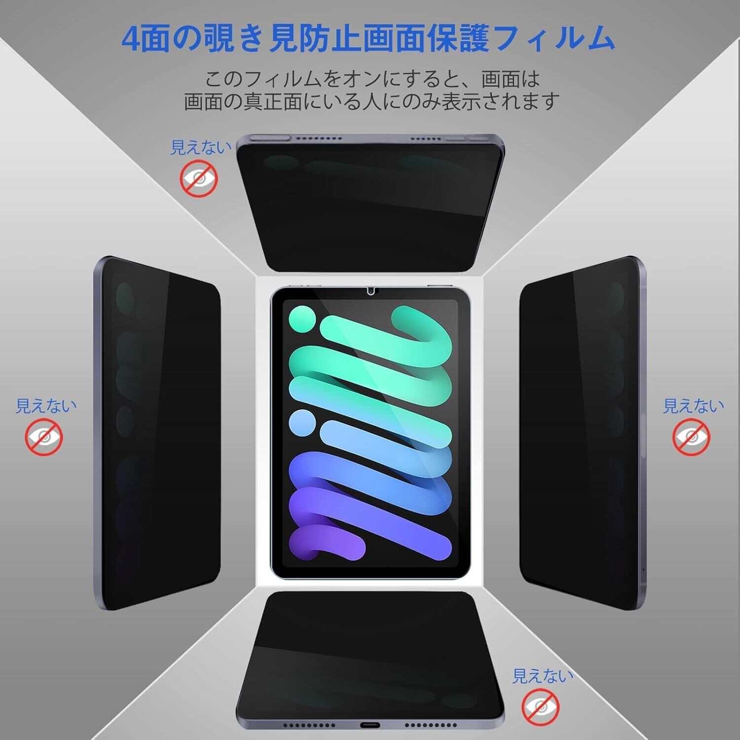 ProCase iPad Mini A17 Pro 第7世代 2024 Mini 6 フィルム 360°覗き見防止 画面保護 強化ガラス 高透過率 耐指紋 自然吸着