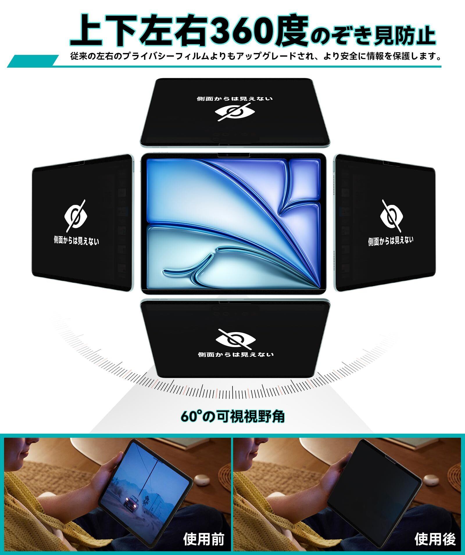 【360°全方位アップグレードされた覗き見防止技術】このアップグレードされたバージョンのiPad 覗き見防止フィルター マグネットは、プライバシーをさらに保護できます。 ipad mini7 保護フィルムは、iPad 画面の内容が 28 度の視線を超えて見えないようにします。最高の 4 方向のプライバシー保護を提供します。どこにいても情報セキュリティを保護します。