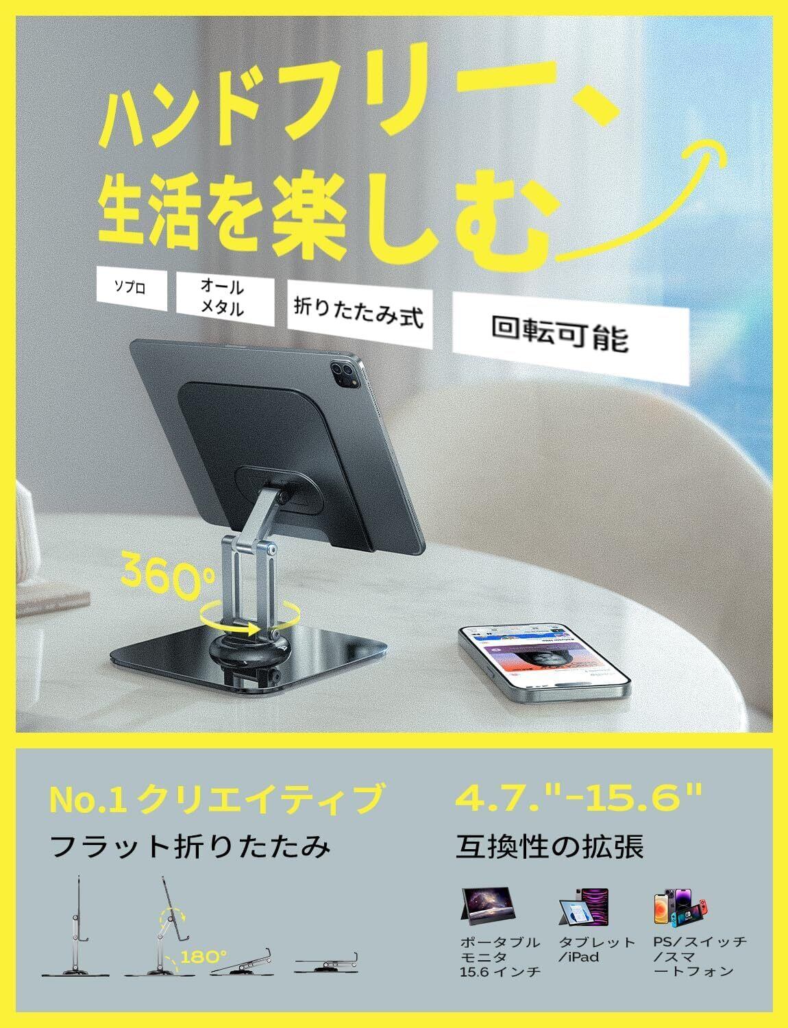 LISEN【最新スイッチ2にも対応】iPad スタンド タブレット 360角度自由調整 スタンド 卓上 折り畳み タブレットホルダー 滑り止め モニター 安定性拔群 置き台 テーブル 2025人間工学設計 iPad 10世代 Air mini/Pro/Fire hd/Kindle/Surface book/Switch 2/スマホ チャコールグレー