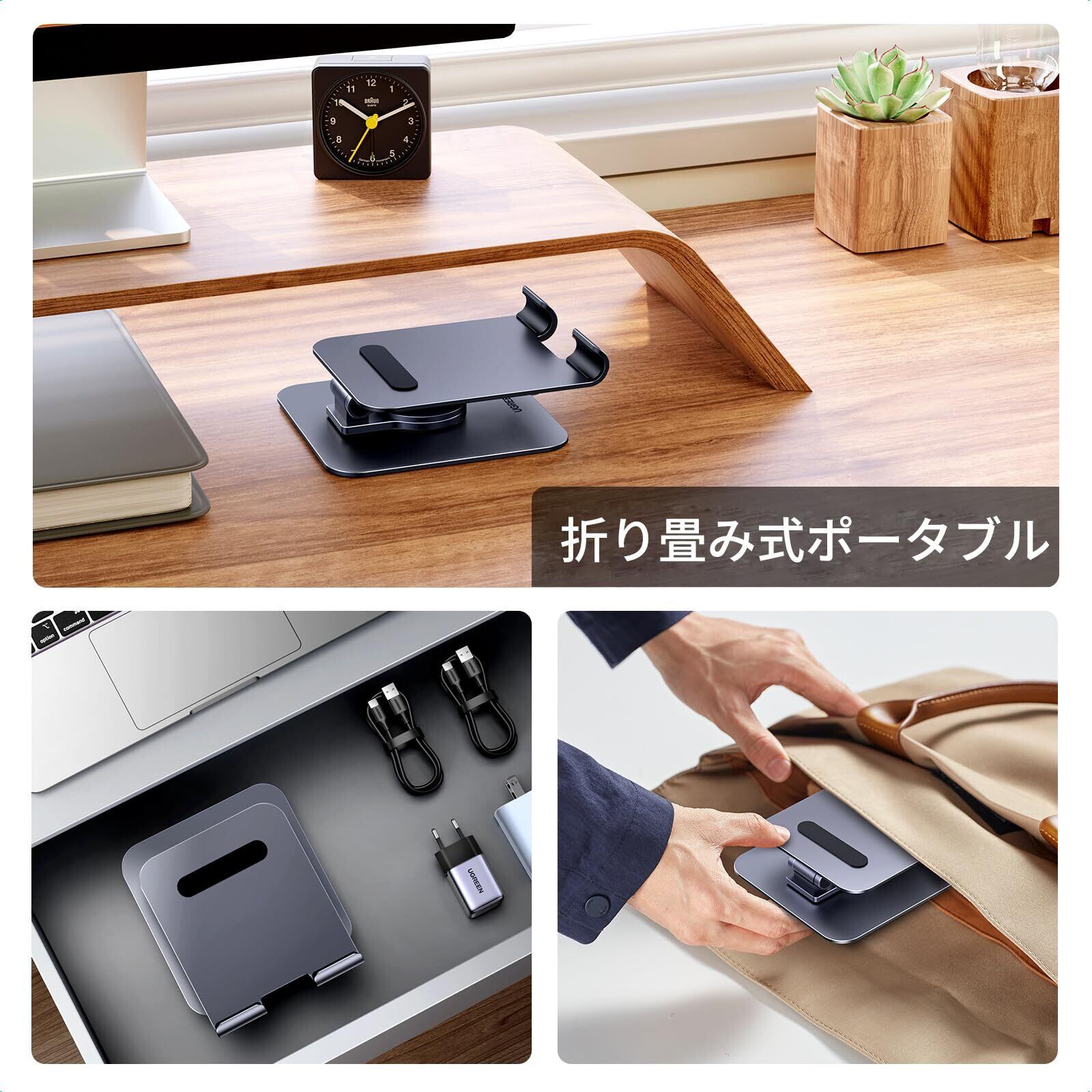 【汎用タイプ】UGREENポータブルタブレットトラベルスタンドは、iPad Pro 12.9インチ2022/2021、iPad Pro 11インチ2021、iPad Air 10.9インチ2022、iPad 10 th 10.9インチ、iPad Mini 6/5/4、Galaxy Tab A 8 10.5インチ/Tab A 9/Tab S 9 S 8 S 7 S 6、Surface Pro 9/X、Surface Go、Pixelタブレット、Mi Pad 6、Yoga Tab M 10、BlackViewタブレット、iPhone 15 Pro Max/14/12、Galaxy S 24 Ultra/S 23 Ultra/S 22/S 21/S 20 FE、Pixel 8/7、ポータブルディスプレイ、Switch Oled、電子書籍、描画タブレットなど。