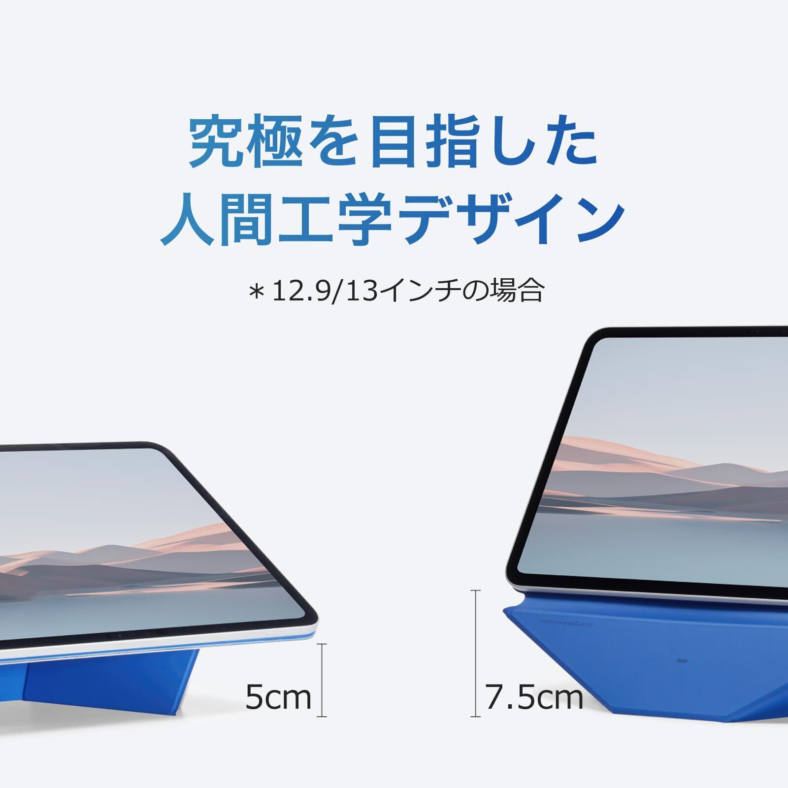 【フローティングモードで快適】最大7.5cmまでiPadを持ち上げることができるフローティングモードを搭載。約30度の角度で首や肩の負担を軽減し、長時間の作業や視聴にも快適です。