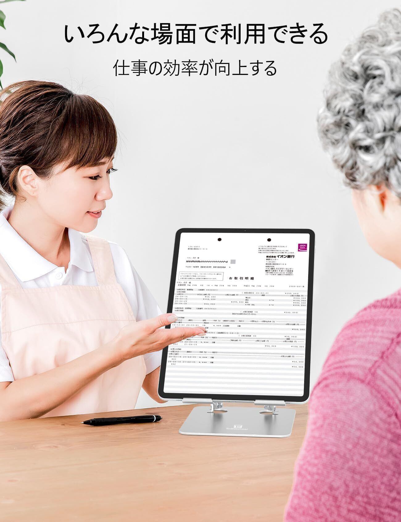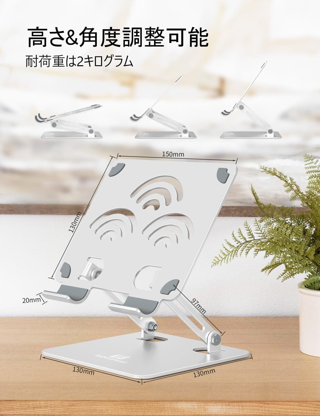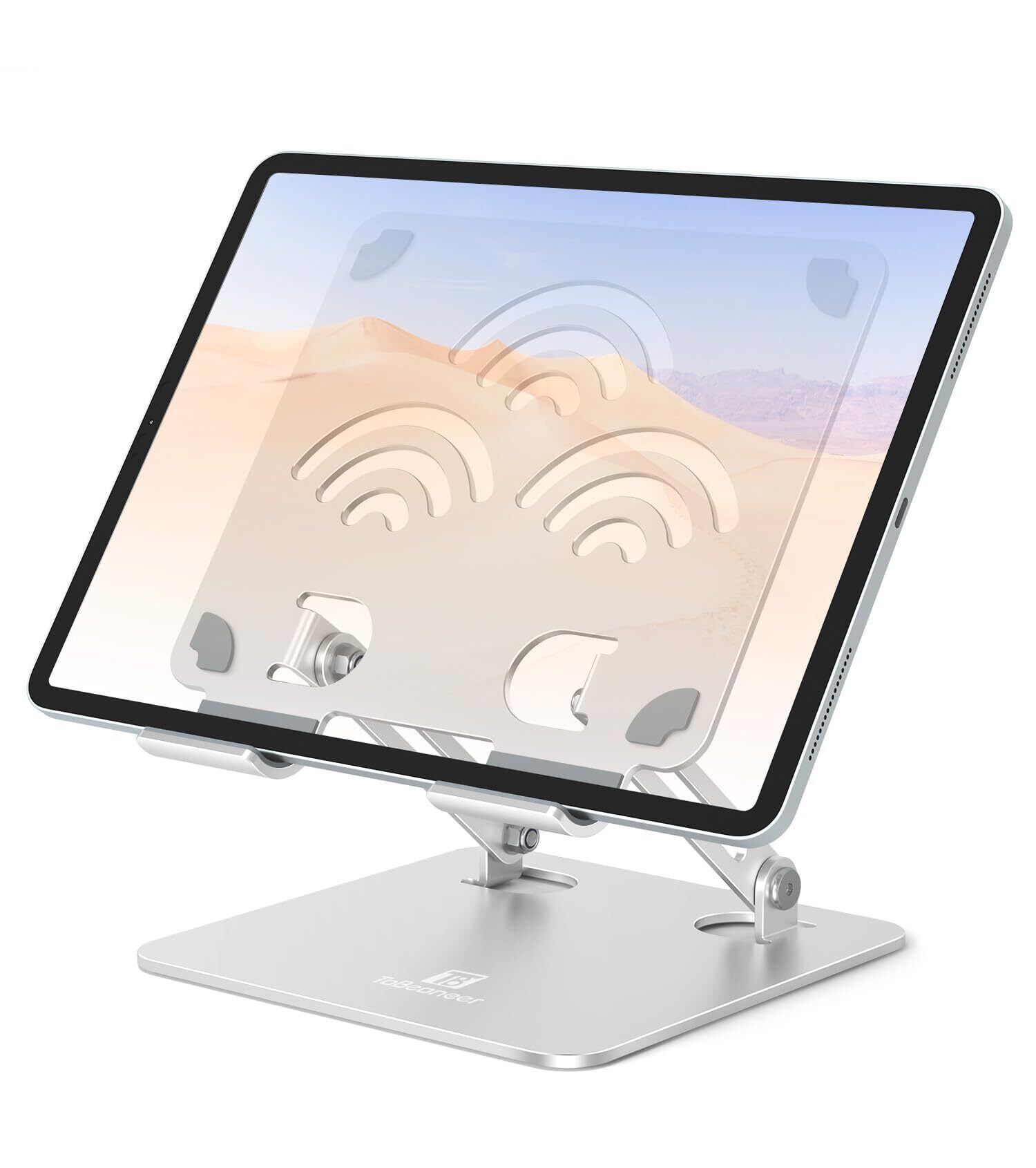 ipadスタンド - タブレット スタンド - 絵描きホルダー - ToBeoneer(ツビワ) - アイパッド 高さ角度調整可能 持ち運び便利 折りたたみ式 イラスト 置き台 卓上 アルミ製 軽量 充電stand 立て 在宅ワーク ZOOM 会議 ipad pro/mini/air/Kindleなど4-12.9インチに対応 (銀色 シルバー, 標準版)