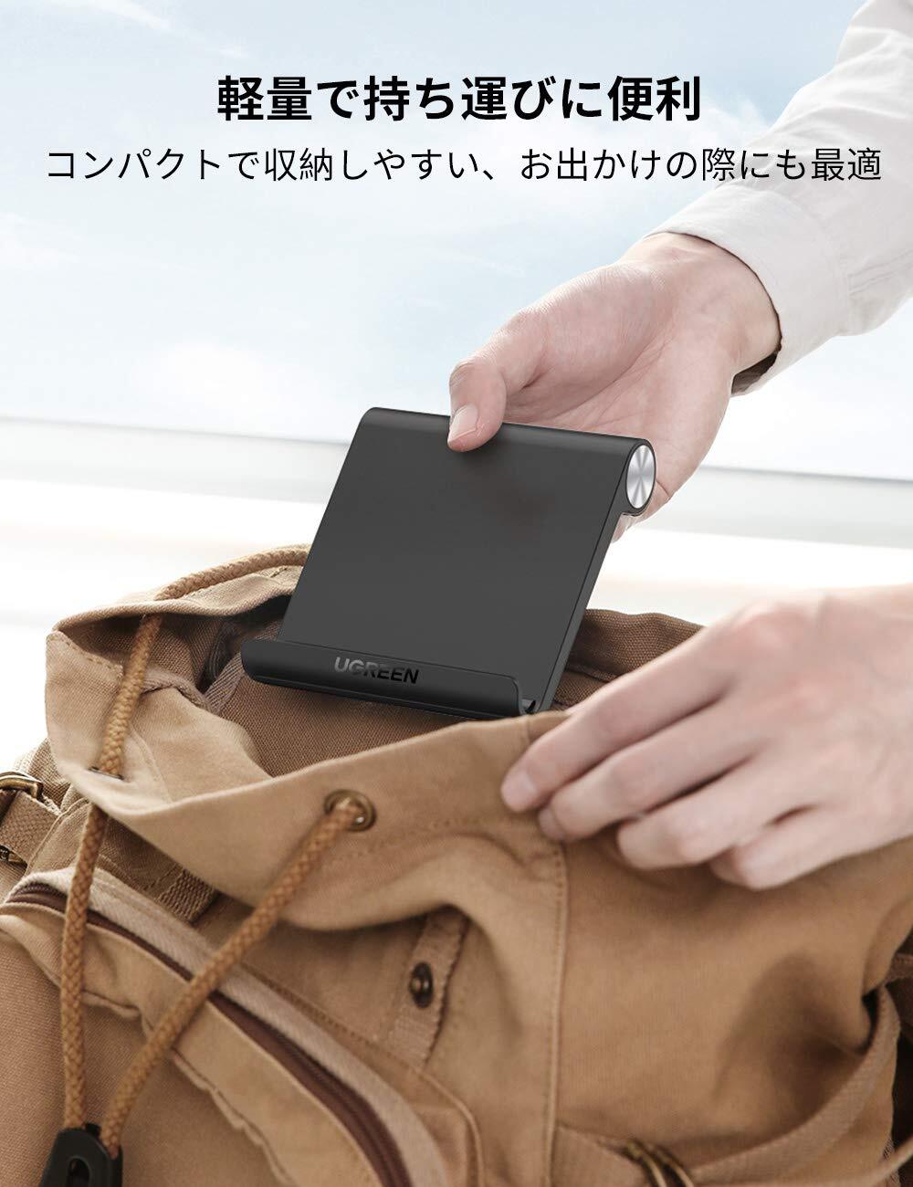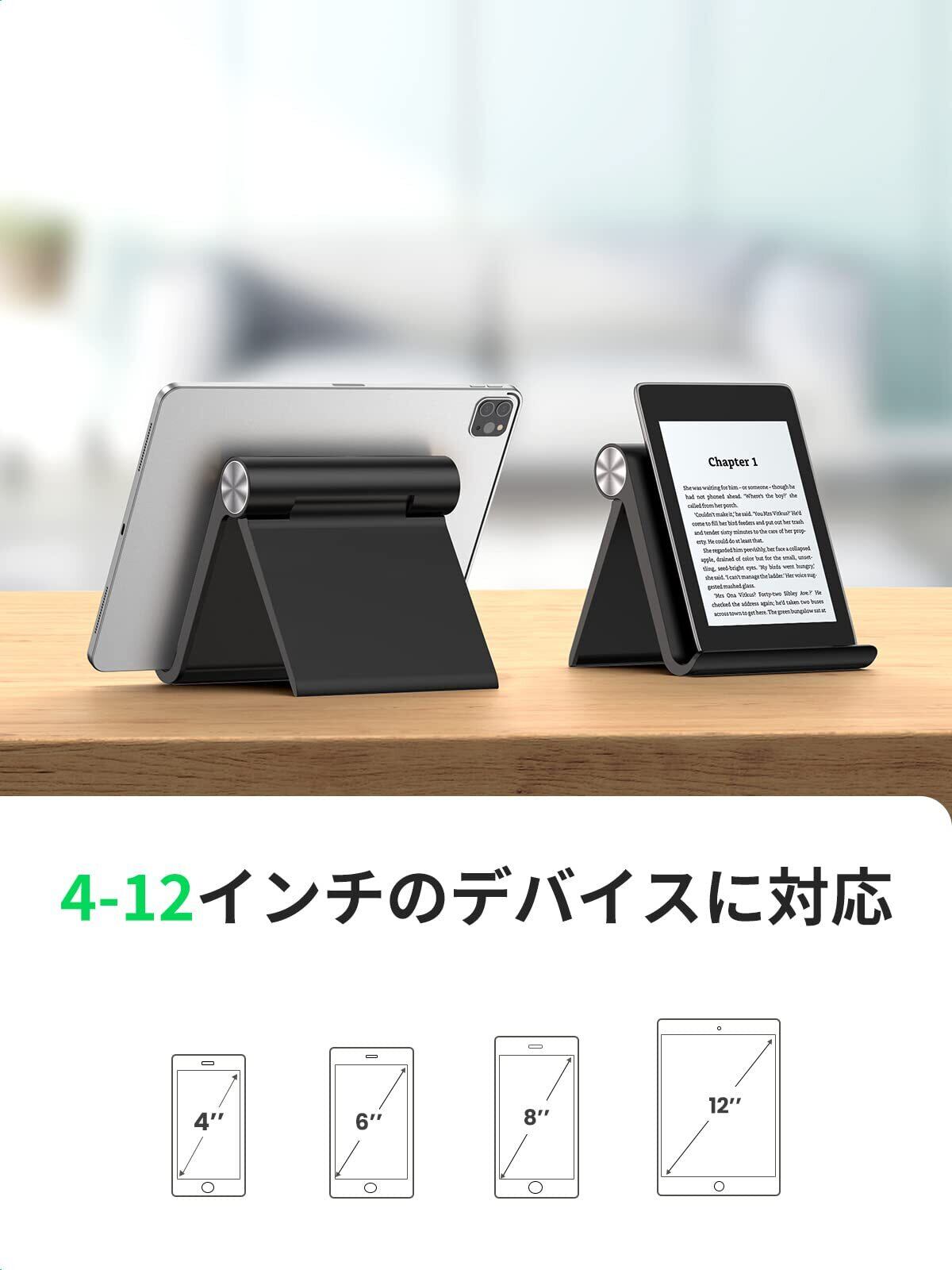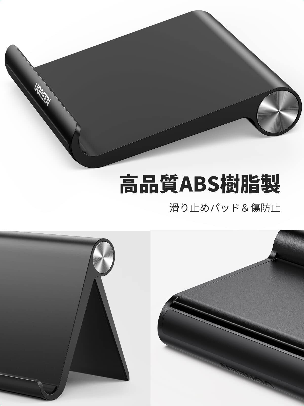 UGREEN iPad スタンド タブレットとスマホ 兼用 角度調整可能 アイパッドスタンド 安定性 ABS素材 滑り止めゴム iPad、Galaxy Tab、Note 6/5、LG、Sony、Nexus、Fire hd、Kindleなどの4-12インチに対応(ブラック)