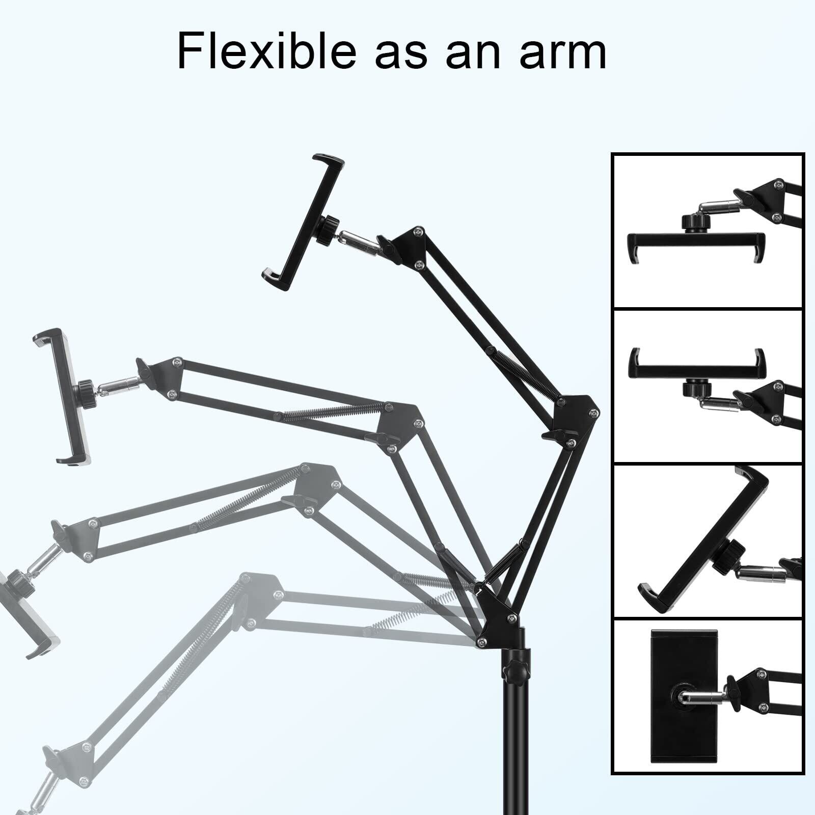タブレットフロアスタンド 床置き 寝ながら 調節可能なユニバーサル360度回転メタルタブレットホルダー 電話スタンド for iPad pro、Kindle、android surface、Fire HD8、N-Switch、iPhone 16 15 14 多機種対応