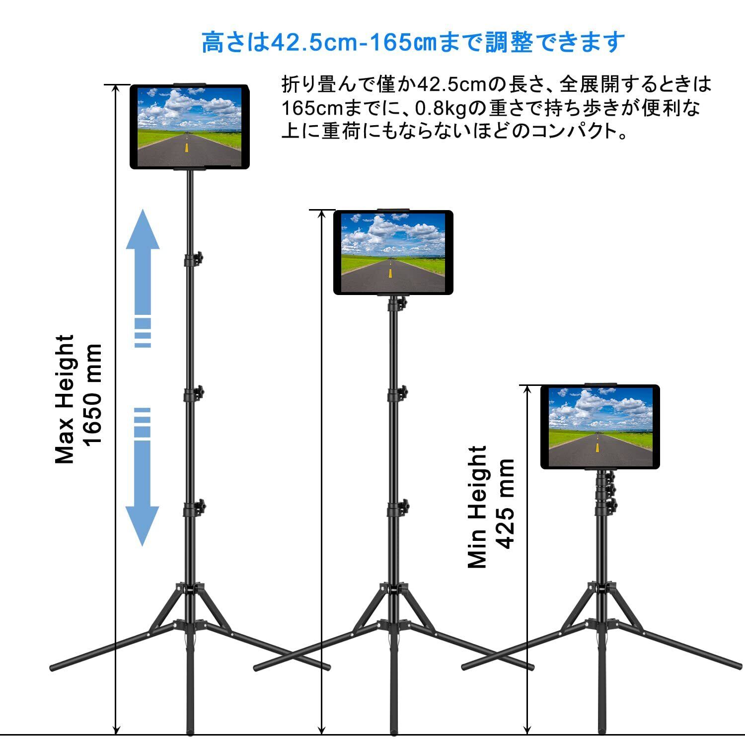【高さ調整可能】高さは42.5cm-165㎝まで調整できます。録画、撮影、コンサート、講演、読書、オフィスミーティング、ZOOM会議など、様々なニーズに満足できます。
