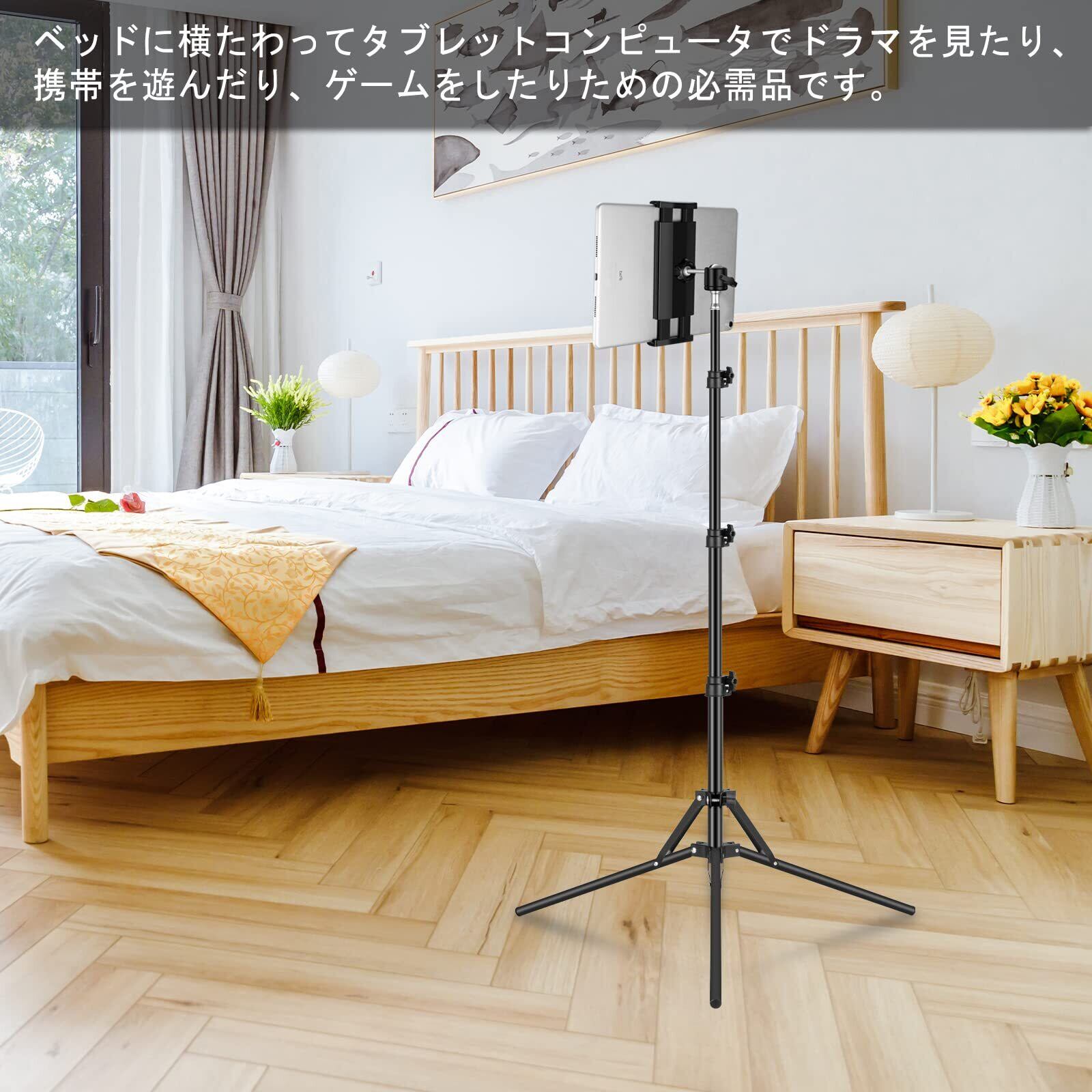 ipad スタンド 三脚 タブレット 両用 スマホ オンライン授業 ipad 三脚 寝ながら 頑丈なアーム付き 360回転 土台強化 安定性ベットスタンド 4.5〜12.9インチに対応 (iphone/ipad/ipad mini/ipad Pro/N-Switch/Kindle等多機種)