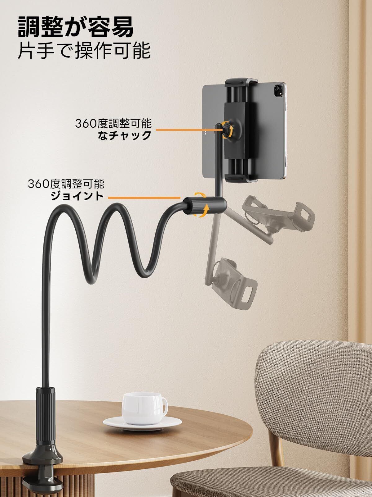 【120CM】このタブレットスタンド長さ120CM にアップグレードされ、より良い使用体験を提供し、目からの距離を自由に調整できるようになり、使用姿勢や使用シナリオがより自由になります。適用対象iPhone、iPad、タブレット、Kindle、電子書籍リーダー、4.7~11インチポータブルモニターなど
