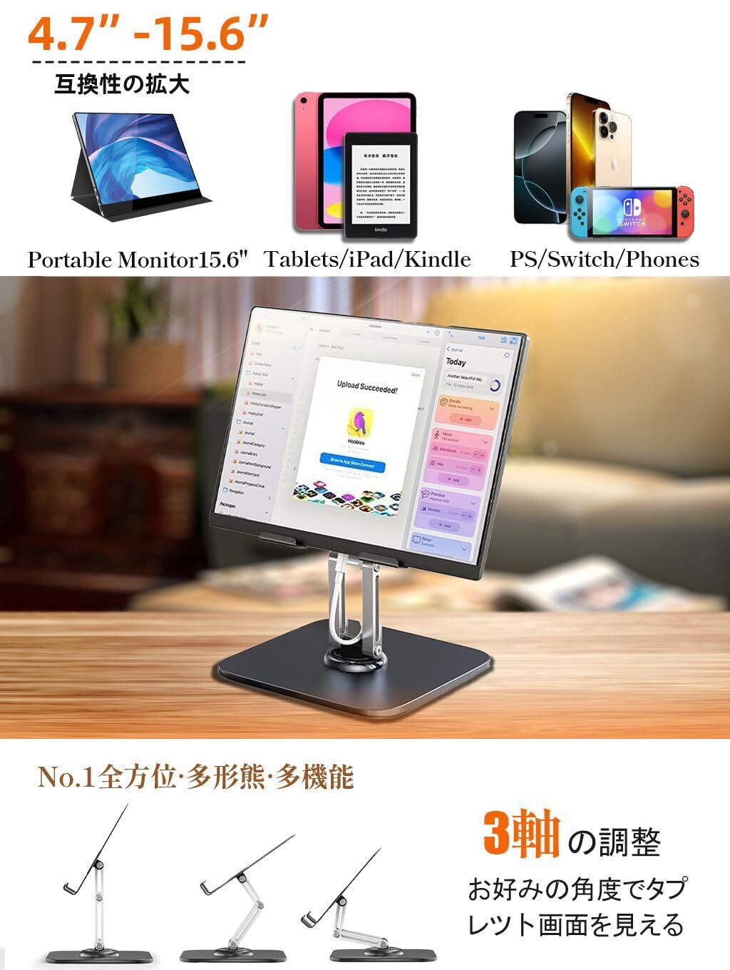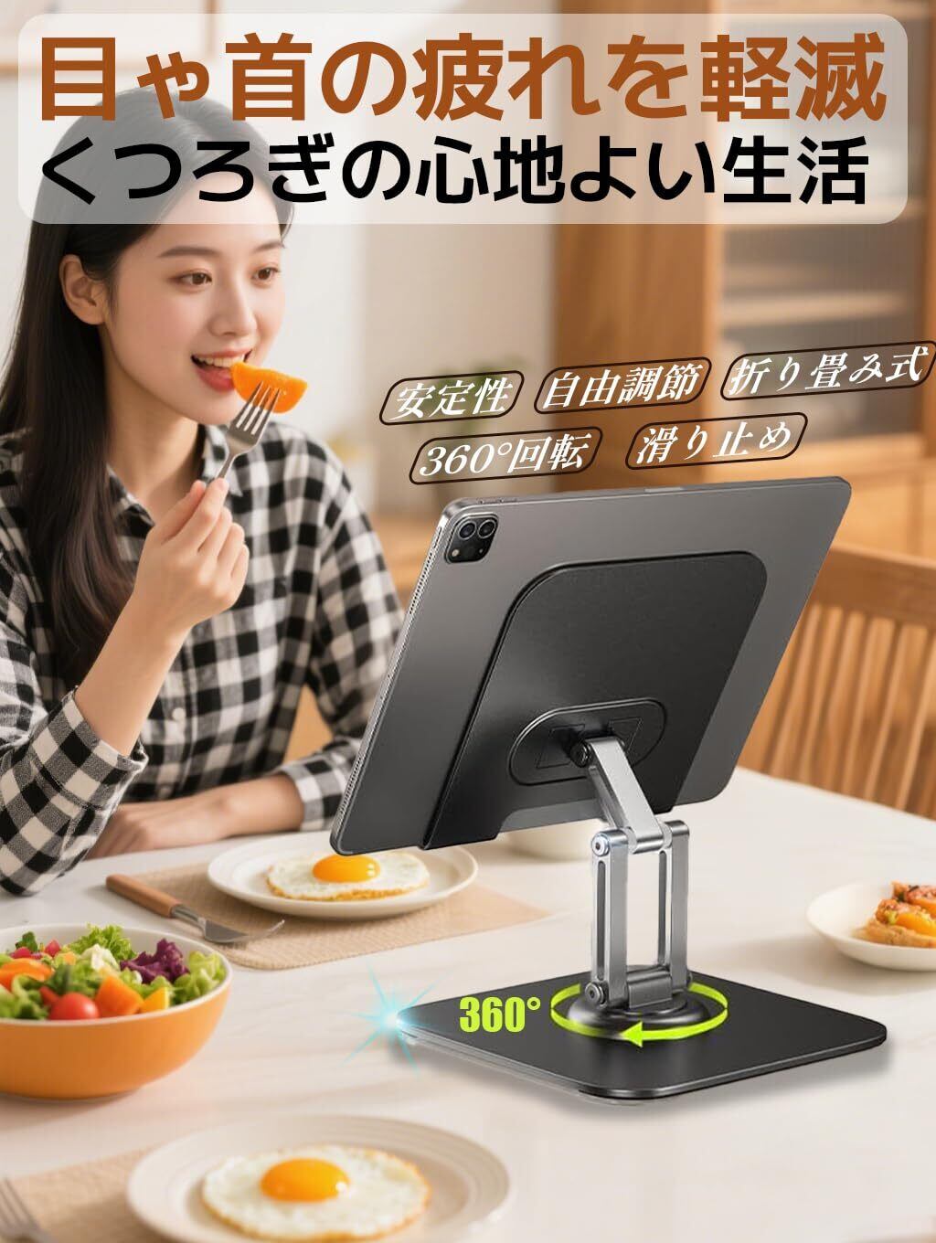 タブレット スタンド 360度調整できるタブレットスタンド 【Nintendo Switch 2対応】 iPad/スマートフォン/Kindle/Surface 全般用 折り畳み式 卓上ホルダー 滑り止め 安定性 チャコールグレー