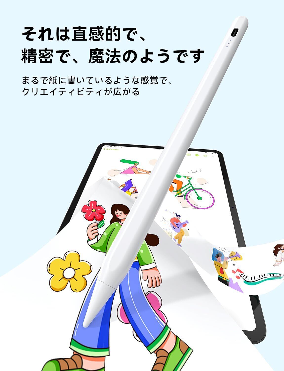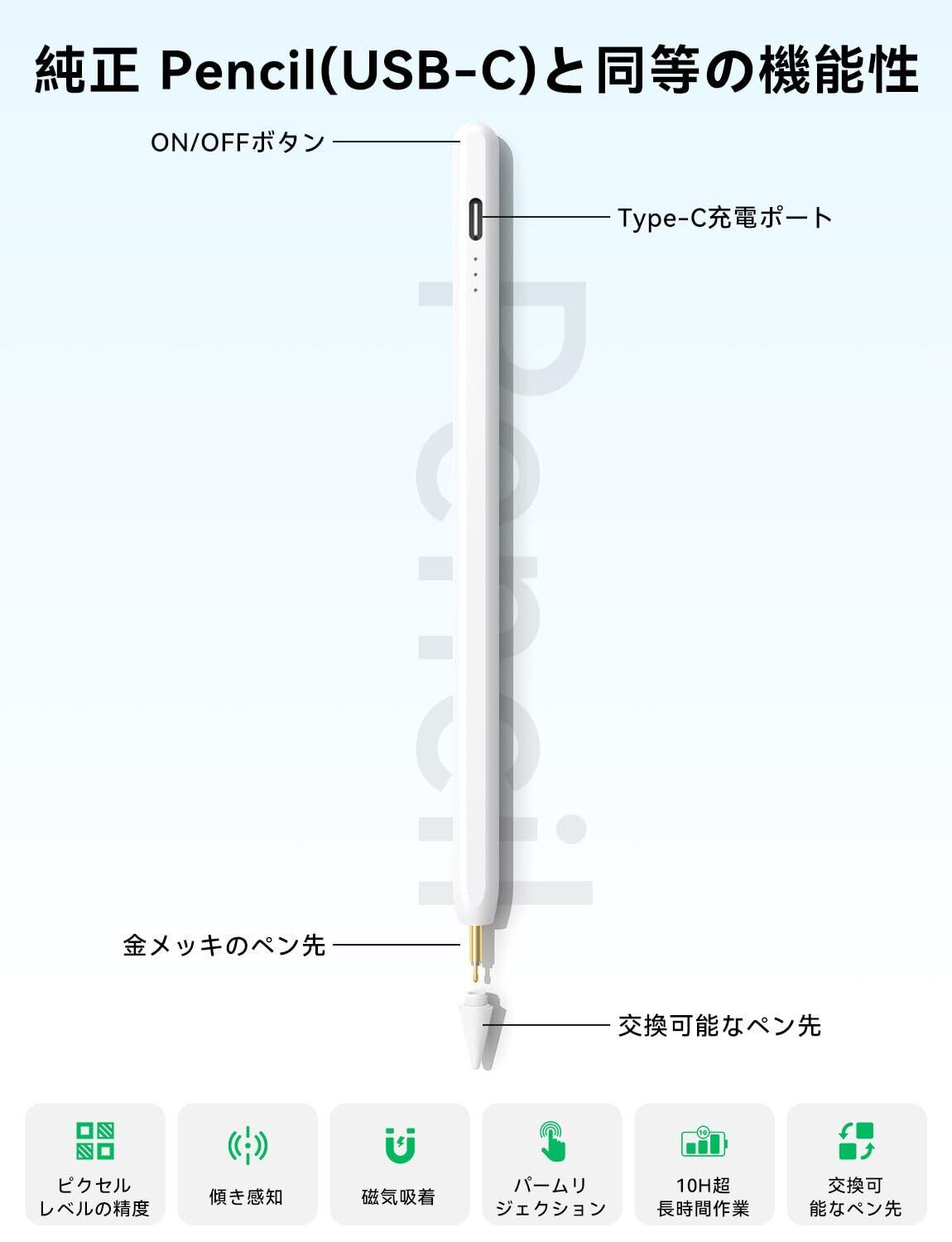 【iPad互換ペンシルの神】HJCE iPad ペン ipad mini 7 対応 Apple Pencil(USB-C)代替品 アップルペンシル タッチペン i Pad ペンシル ピクセルレベルの精度と低いレイテンシー 磁気吸着/傾き感知/パームリジェクション 2018年以降iPad / Pro/Air/mini 対応(ホワイト)