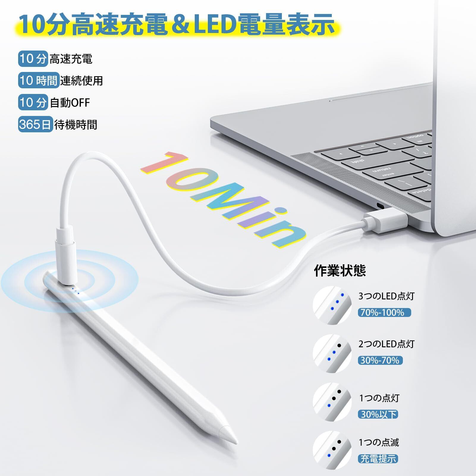 ✏【10分高速充電&省エネ&分かりやすい電量表示】 HATOKUアップルペンシルはUSB-C超高速充電技術を搭載。10分間でフル充電となり、10時間の連続使用が可能。また、10分間で自動スリープ機能がより省エネになる。3つのLED電量表示により、電量状況が一目瞭然です。バッテリーの残量が少ない場合、点滅してお知らせします。さらに、ipadペンシルには安全保護システムも搭載されており、より安全かつ安心してご使用いただけます。