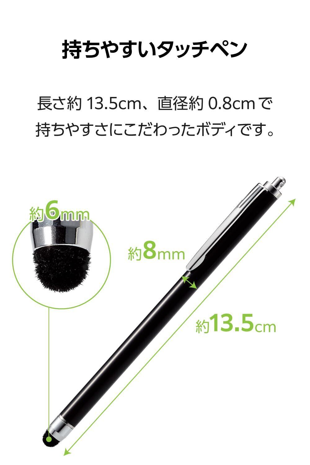 エレコム タッチペン スタイラスペン 【iPad/iPhone/Android スマホ・タブレット各種対応】 超感度 充電不要 高密度ファイバーチップ採用 クリップ付 ストラップホール付 ブラック PWTPC02LBK