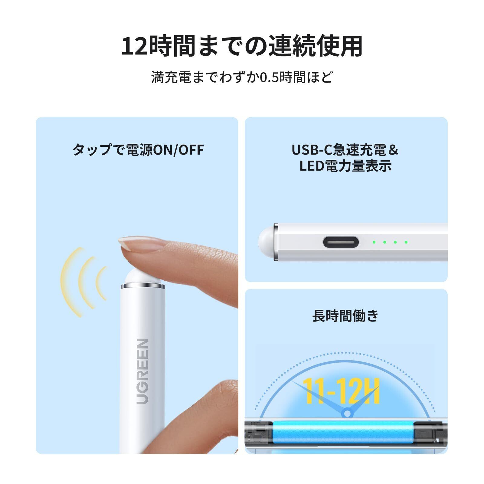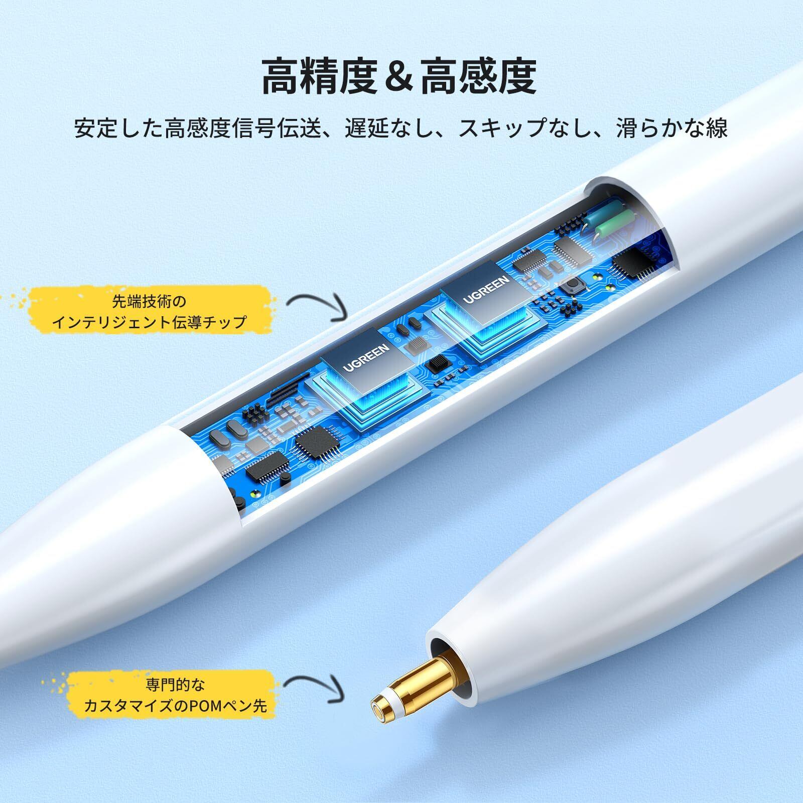 UGREEN iPad ペン タッチペン iPad 10世代/iPad Air M2/iPad Pro M4 2018以降各機種対応 ペンシル 磁気吸着 高感度 Type-C急速充電 LED電量表示 傾き感知 誤作動防止機能 スタイラス タブレット ペン
