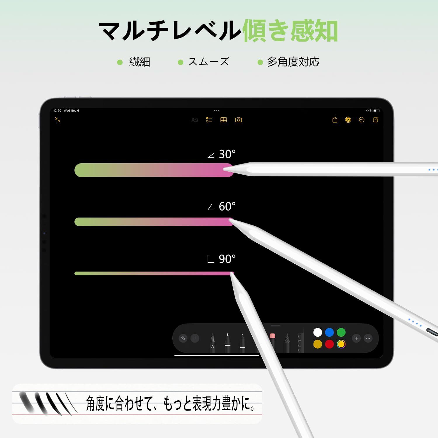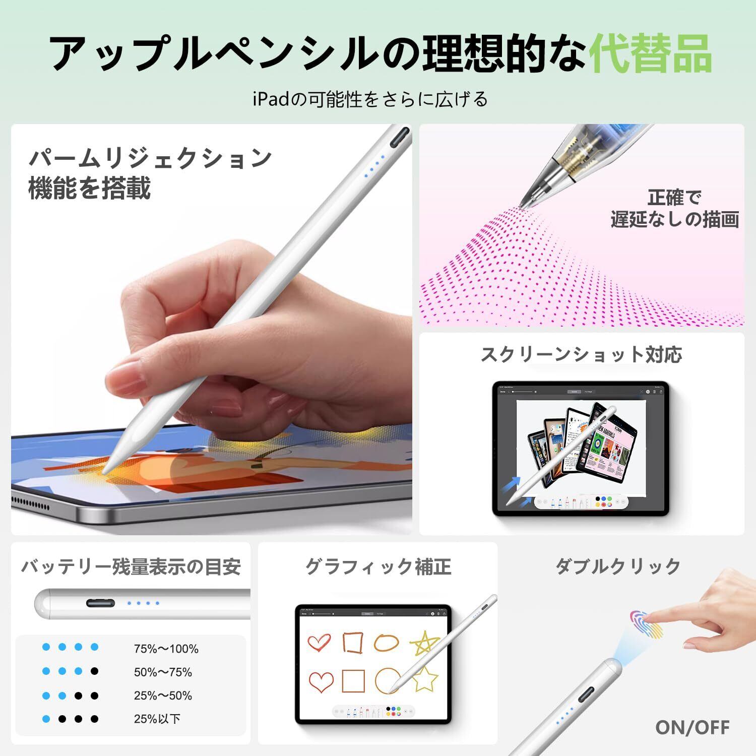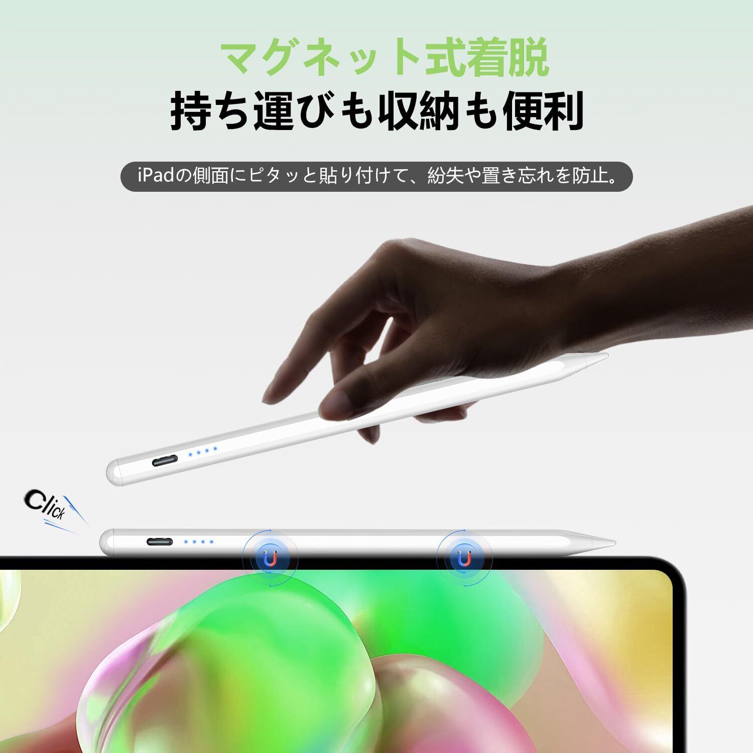 アップルペンシル ipad ペン 2018年~2025年iPad対応 ペンシル あいぱっと タッチペン アイパッド 高感度 傾き感知 磁気吸着 パームリジェクション スタイラスペン 軽量 耐摩 pencil 学生 手帳/メモ/イラスト/筆記/勉強/デザイン用 クラシックホワイト
