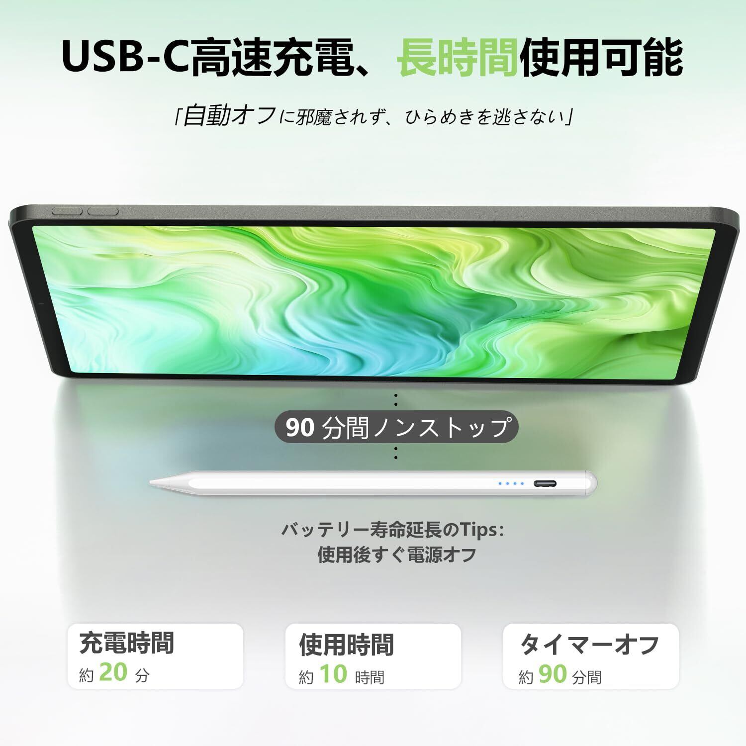 【Type-C急速充電&10時間連続使用|90分自動オフでストレスフリー】 SENKUTA iPadペンシルは、最新のUSB-Cポートに対応し、わずか20分で急速充電。最大10時間の連続使用が可能で、学習やデザイン、オンライン授業、ビジネスシーンでも電池切れの心配がありません。さらに、90分間操作がないと自動的に電源オフになる設計により、頻繁な自動オフによる中断を防ぎ、集中を妨げません。 (ご使用後は、手動で電源をオフにすることで、バッテリーの寿命をさらに延ばすことができます。)