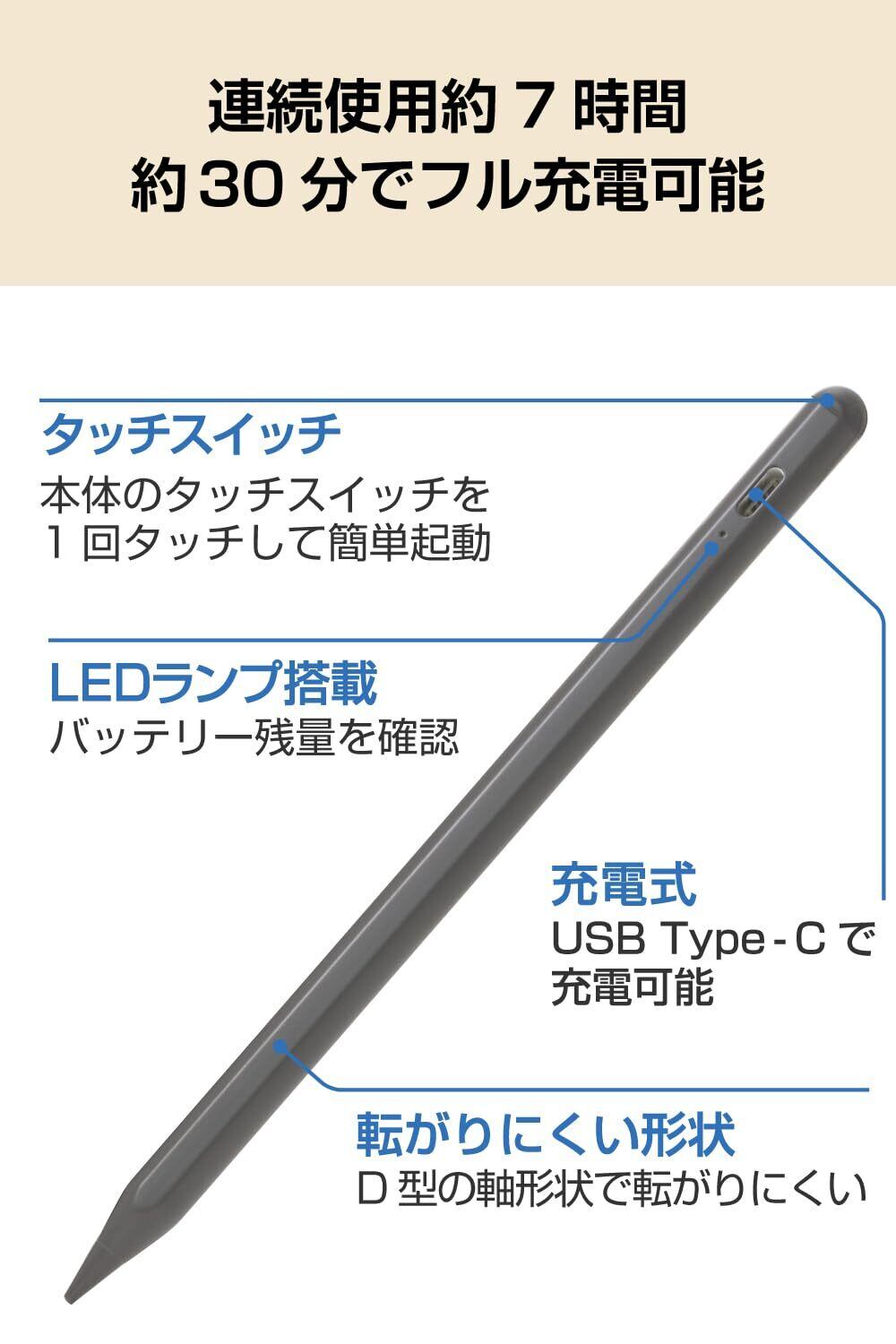エレコム タッチぺン スタイラスペン 【他機種 スマホ・タブレット各種対応】 急速充電 30分でフル充電 マグネット吸着可能 タイプc充電 (汎用タッチペン) ブラック P-TPACST05WBK