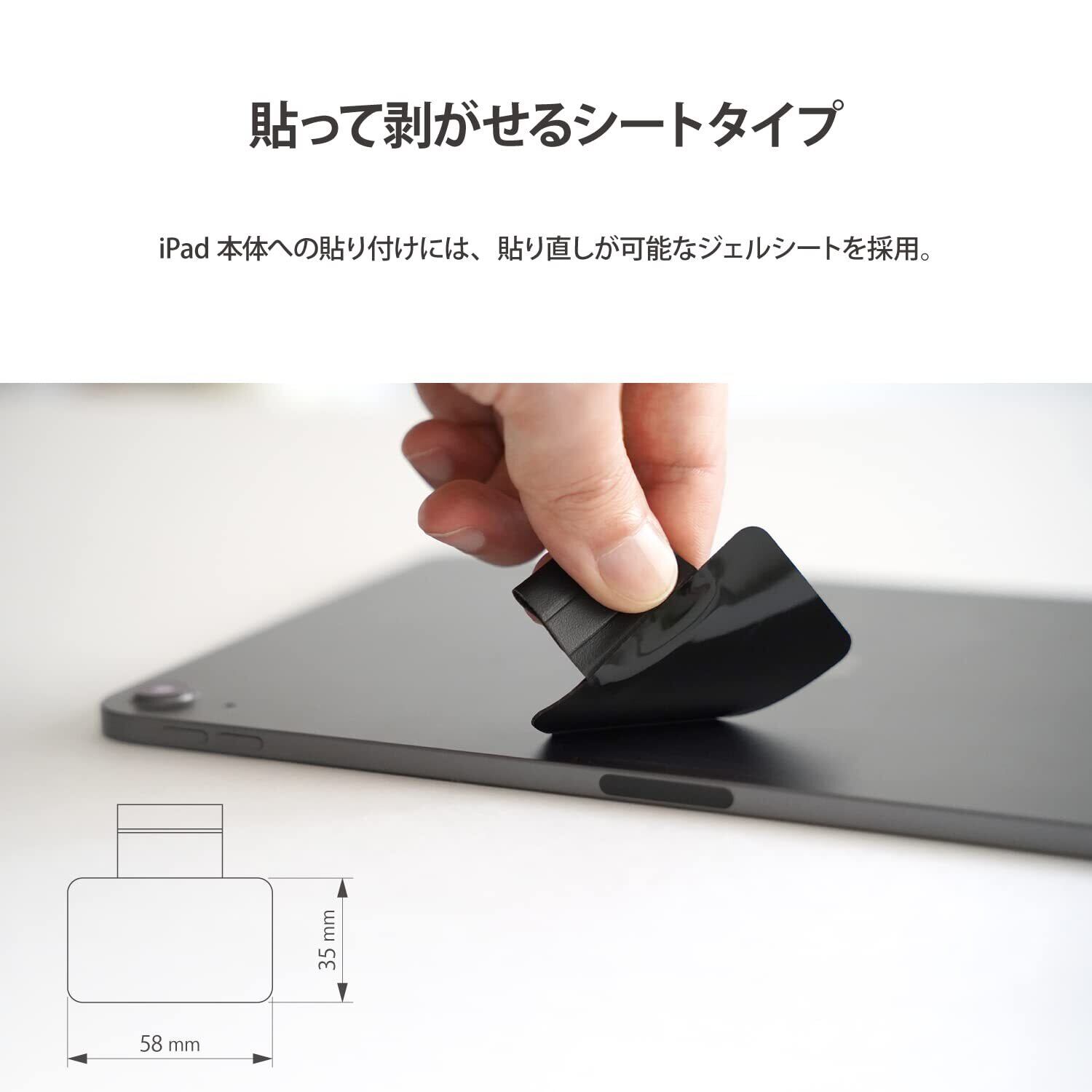【貼り直し可能なシートタイプ】iPad本体への貼り付けには、貼り直しが可能なジェルシートを採用し、ペンホルダーをしっかり固定することができます。