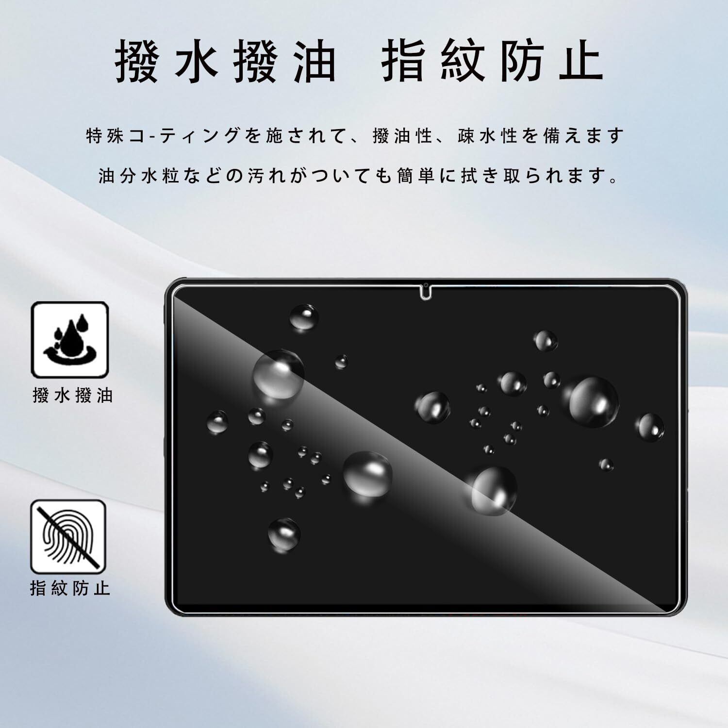 【撥水撥油・指紋防止】耐油性に優れ、撥水性が高く指紋がつきにく 付着した汚れなどは簡単に拭。画面に多くの痕跡を残すことなく。