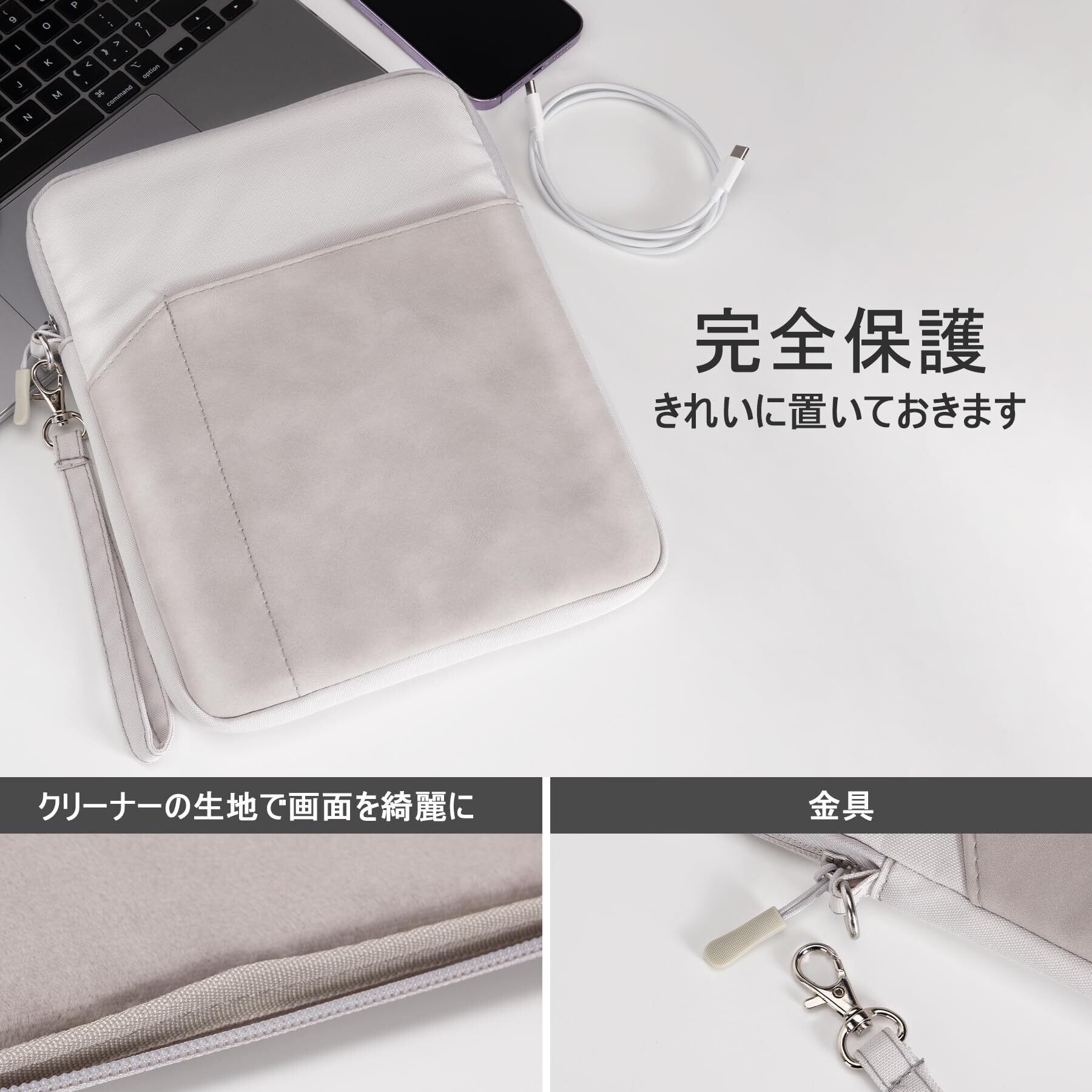 内側は柔らかいミナマット生地でタブレットをすり傷、衝撃からしっかり保護します。撥水加工された表地使用。