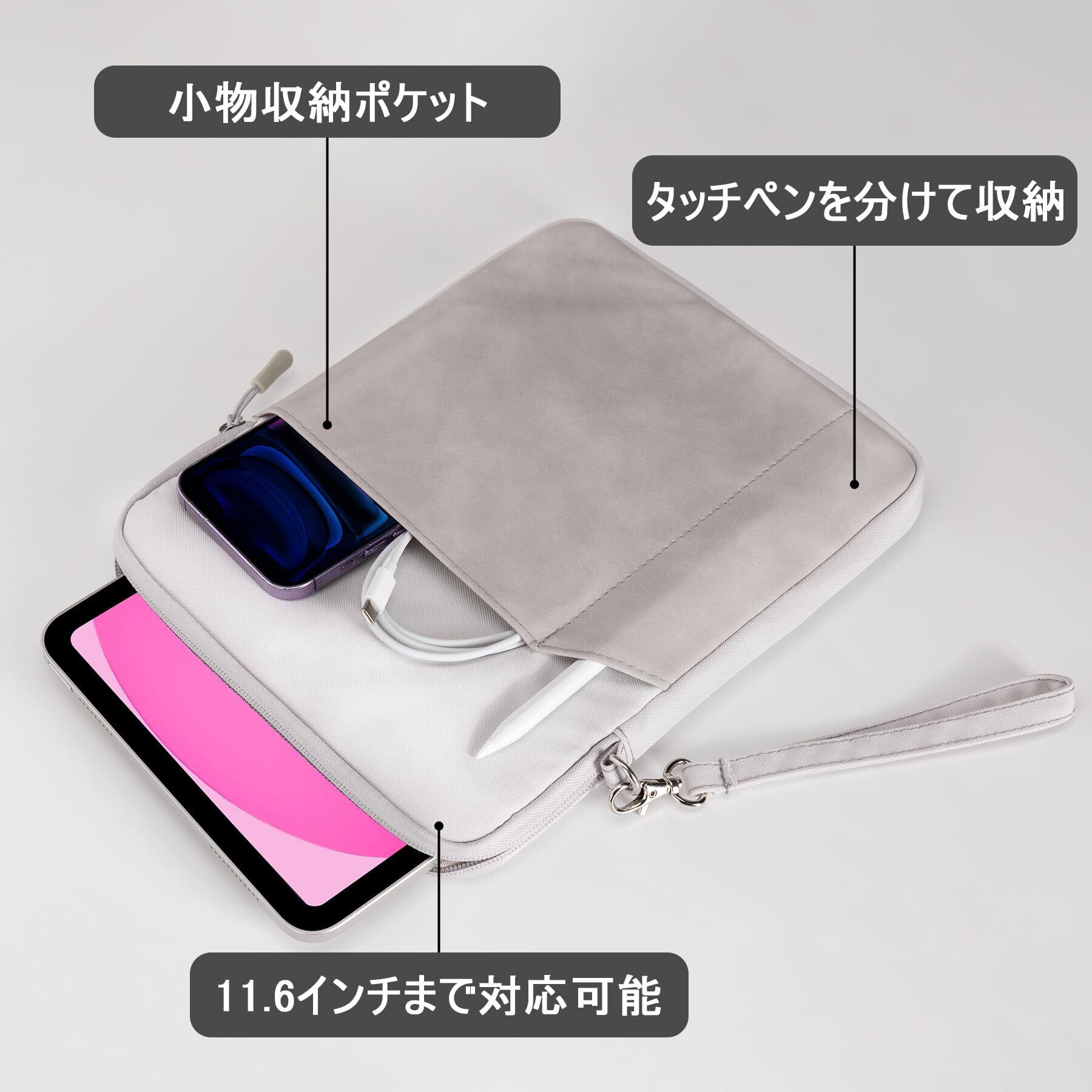 TopShine タブレット スリーブケース 9-11インチ iPad Air M2 2024 スリーブ 10.9インチ iPad Air 5/4 iPad 10/10.2 iPad 9/10“等対応 タブレットインナーバッグ タブレットケース 小学生 ipad pro ケース ipad バッグ ポーチ iPad 第7/8/9/10世代/iPad mini6 等対応 (グレー, 9ー11インチ)