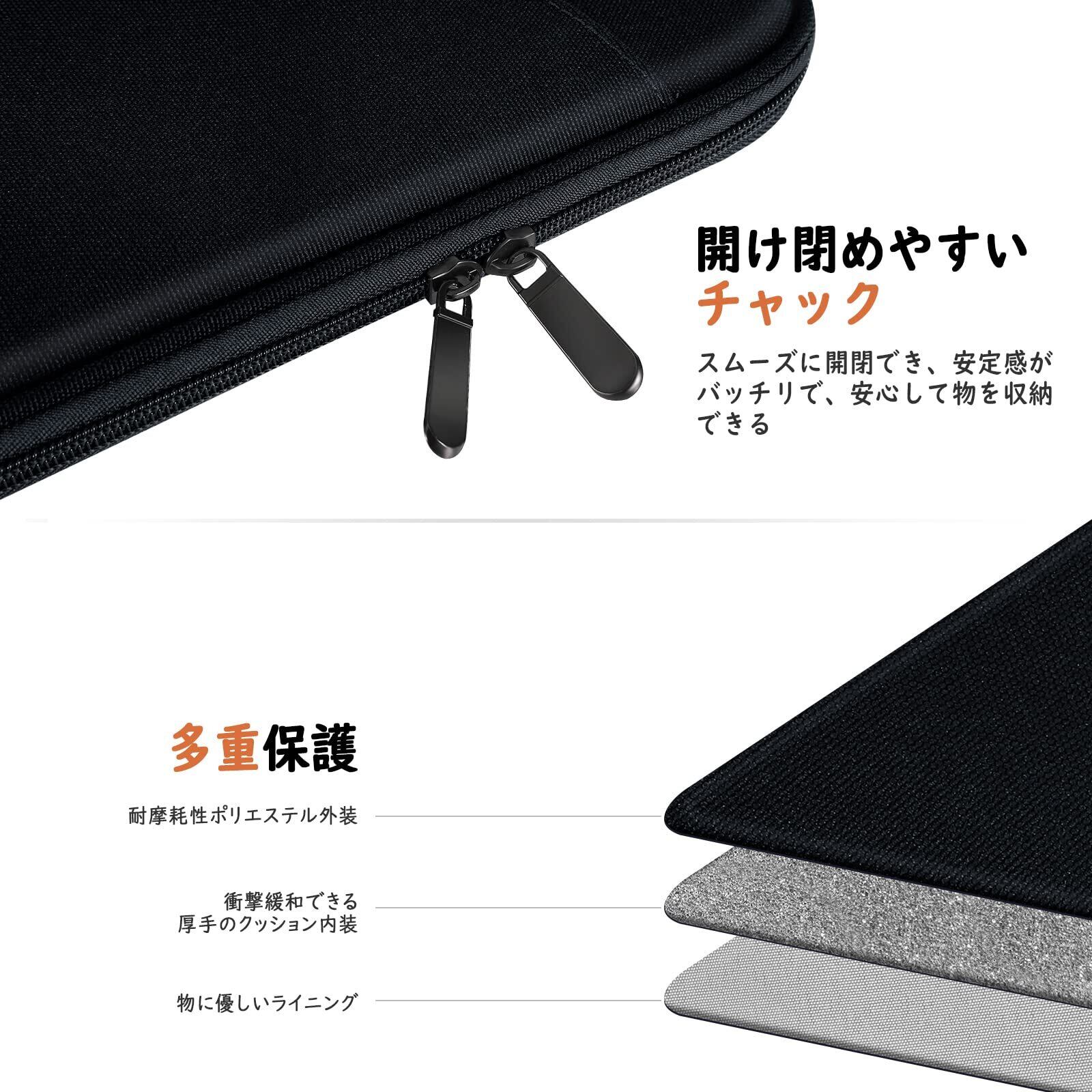 「出し入れやすく取り扱い簡単」ケース全体は適度な厚みがありながら、体積を少なくして軽量化を実現した仕上がりになっており、メインポケットは出し入れにも便利でスムーズに開け閉めできるダブルファスナー仕様を採用し、外側フロントポケットは開け閉めなしの仕様に仕上げておりよく必要されるカードなどの出し入れにはより手軽に行えます。面ファスナーや磁性ボタンの留め方より、防水性と安全性が高まり、スムーズに開けられるので、忙しいときにノートパソコンを素早く出し入れも対応できます。