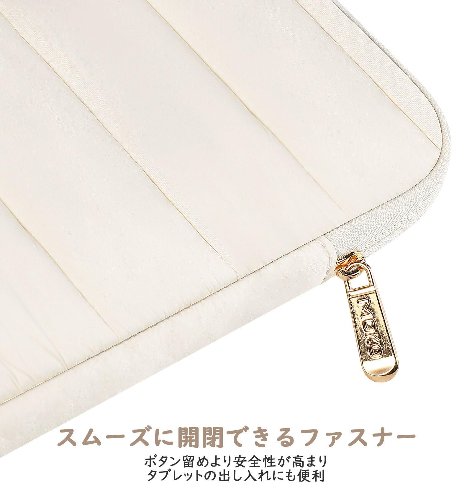 MoKo タブレットケース キルティングバッグ 11インチまで対応 ふわふわ 衝撃緩和 完全保護 ファスナー開閉 iPad Pro M4 2024/iPad Air M2 2024/iPad 10.2/iPad Air 5/4 Surface Go 2 10.5/Go 10/Galaxy Tab S8/Tab A9+等タブレット対応 White