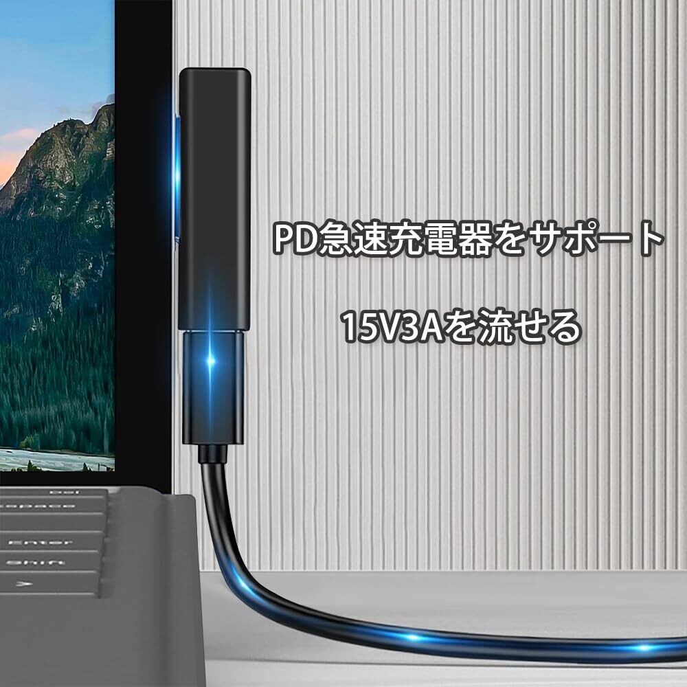 サーフェス充電アダプター Surfaceアダプター Type-c to surface Pro USB PDプロトコル必要 surfacePro7/6/5/4/3/Go3/2/1Laptop1/2/3/4 Book など対応 65W 15V3A急速充電