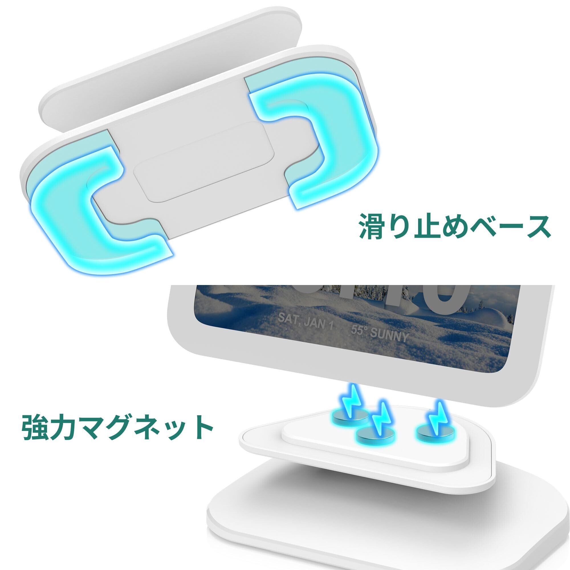 マグネットの台座デザイン: Show 5はマグネットでスタンドに固定されるため、デバイスが安定し、取り付けや取り外しが簡単です。
