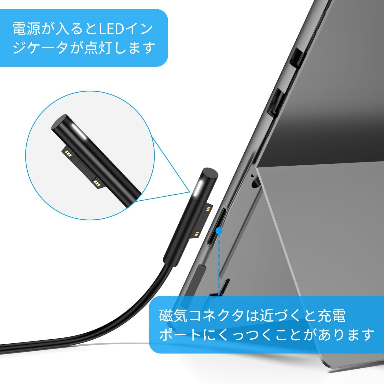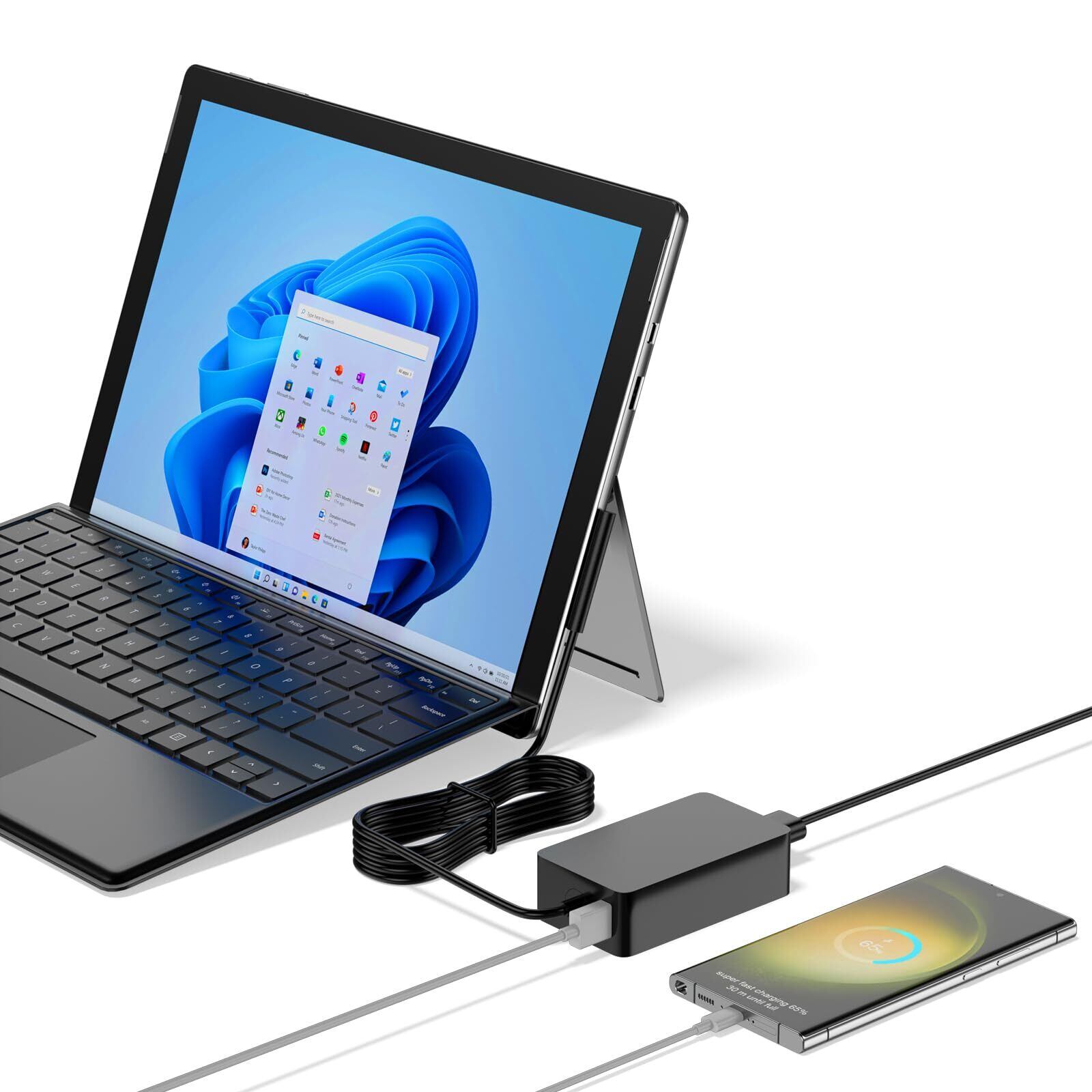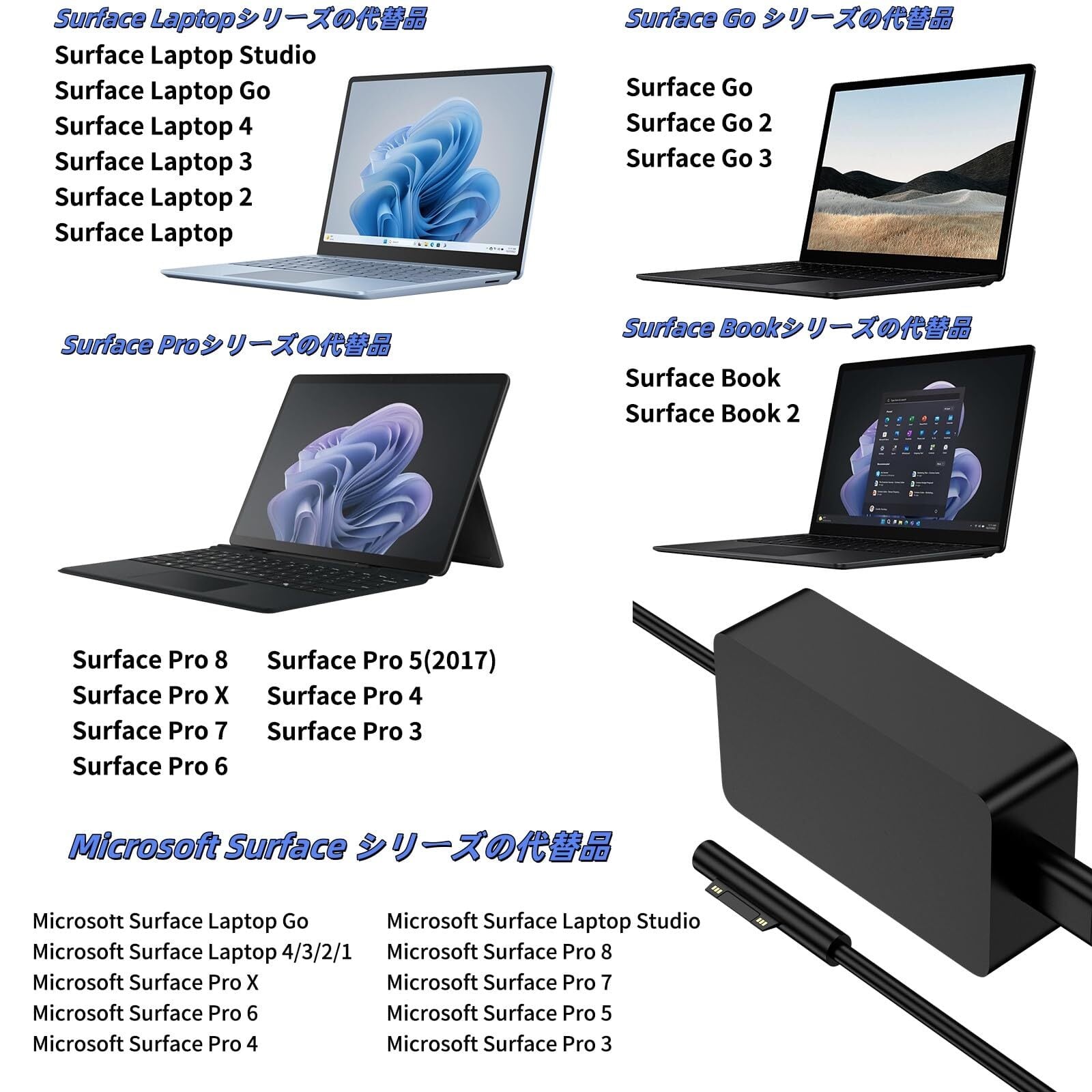 互換 Microsoft 充電器:互換 Surface Pro9、Pro8、Pro X、Pro7、Pro6、Pro5/2017、Pro4、Go、Go2、Go3、Go4 タブレット、BOOK1、BOOK2、Laptop、Laptop2、Laptop3、Laptop4、Laptop5、Laptop Go と互換性があり、互換 Surface AC アダプター 1706/1800/1735/1736 に対応します。