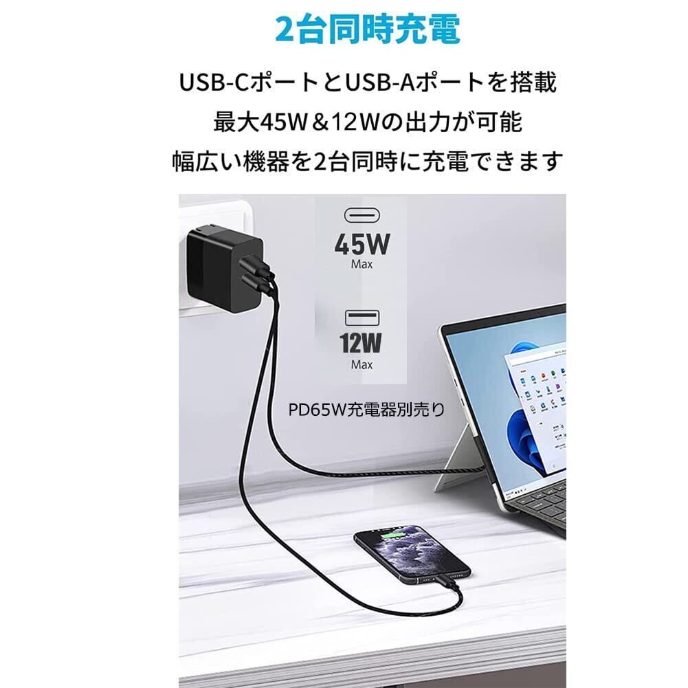 【高速充電】Typec-Surface PD高速充電、15V/12V対応15V3A 1.8M;※ご注意このSurface 充電ケーブル は45Wので、65W必要なデバイスは対応可能ですが、充電遅くなる恐れがあります。
