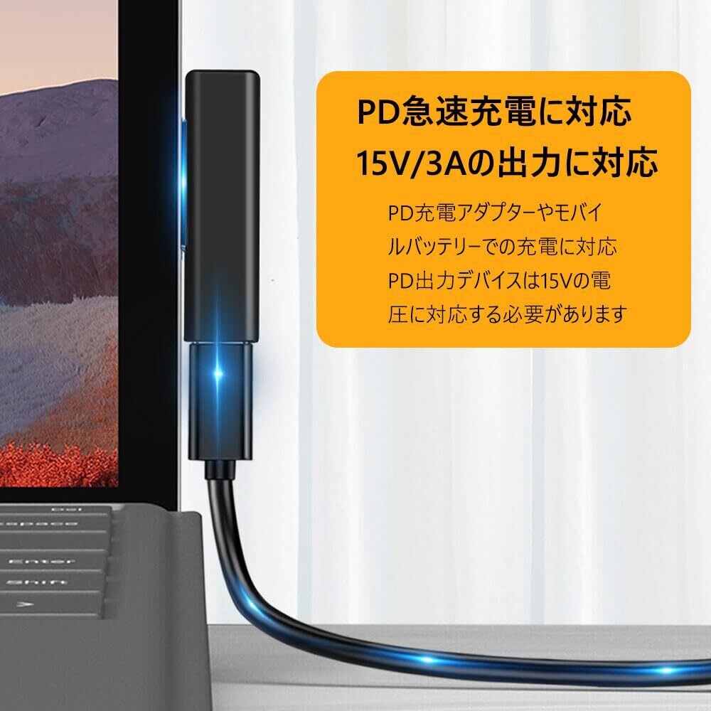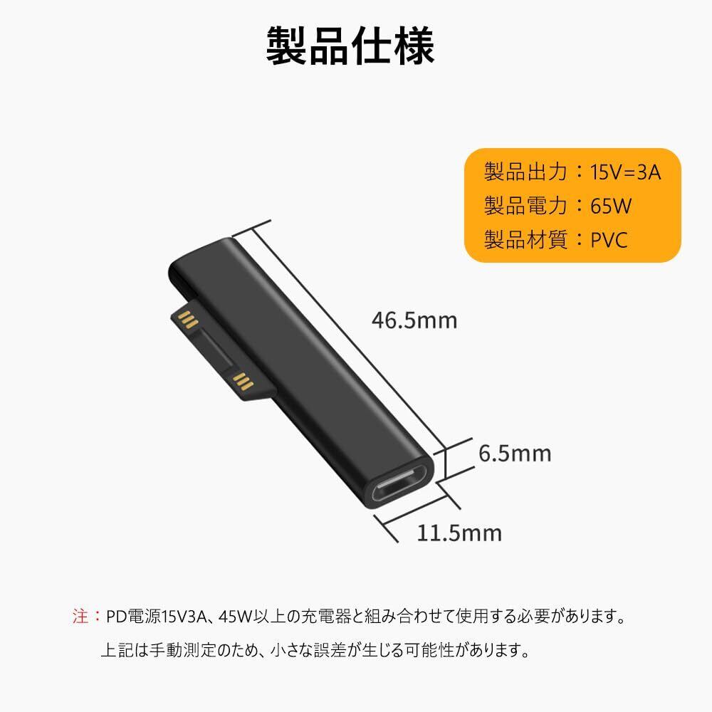 DFsucces 互換品 USB-C to Surface Pro 急速充電 Type-C充電器必要 15V/3A 65W PD Surface Pro 7/6/5/4/3 Surface Go Surface Laptop Book 適用 変換 タブレット対応 (ブラック/2個)