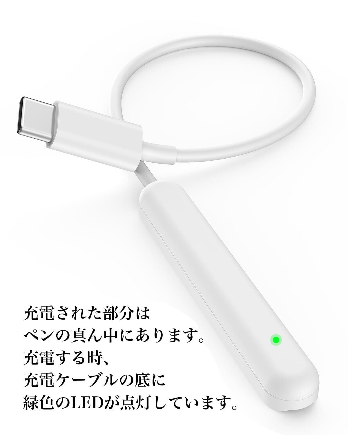 使い方:ワイヤレス充電ケーブルをUSB C電源アダプタに接続すると、Pencilを磁気充電ケーブルにくっつけて充電できます。(※ご注意:ペンシルの充電される部分は真ん中にあります。)磁気充電できるタッチペン(Apple Pencil Pro以外)にシリコン保護カバーがあると充電できない場合がありますので、保護カバーを外してから充電してください。