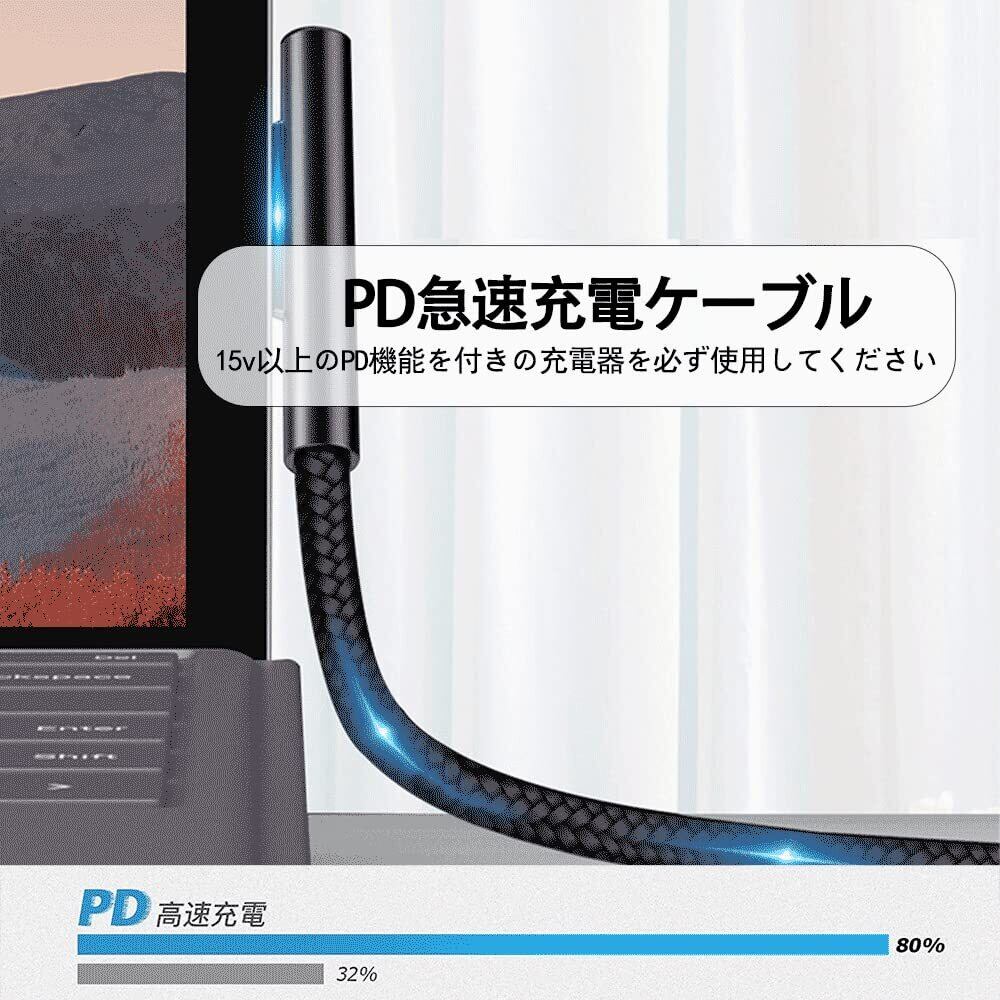 Surface 充電ケーブル Type-c サーフェイス 15V/4A 65W PD急速充電器 ナイロン編み Type-C USB-C Surface Pro7/Pro 6/Pro 5/Pro 4/Pro 3 Surface Go1/2/3 Surface Book1/2/3 Surface Laptop1/2/3/4など対応 (2m)