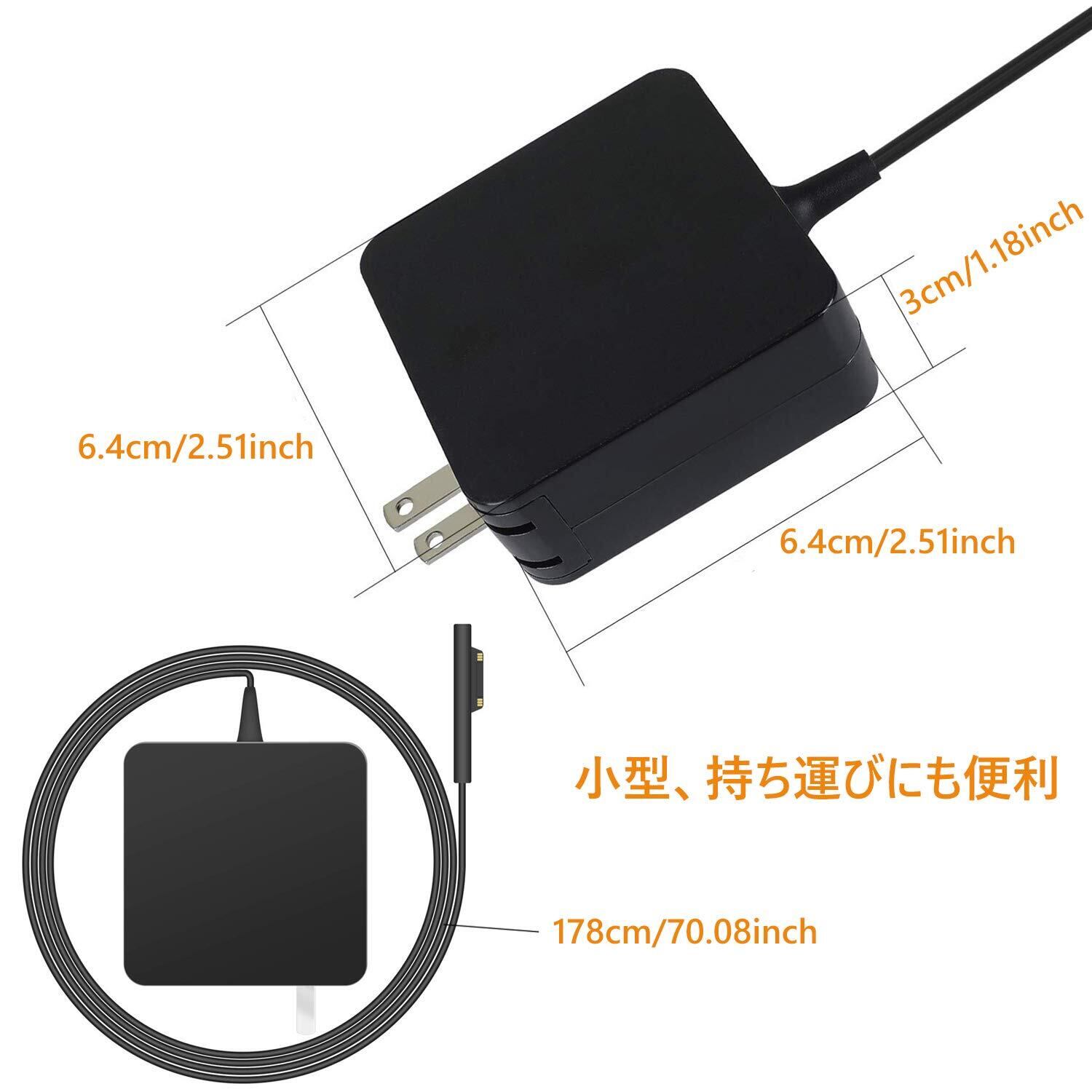小型・軽量マイクロソフト用ACアダプタ。ケーブルをスッキリまとめることができできます。かなり便利だ。高い利便性, 旅行や外出用には持ち運び便利です。見た目もシンプルです。
