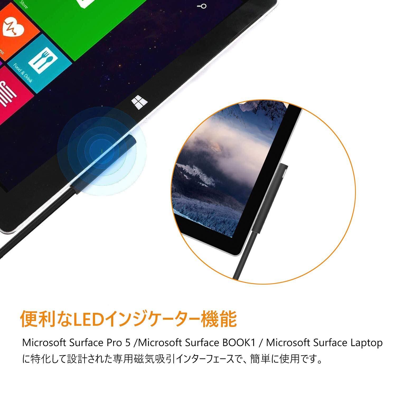 Voltage(電圧): 入力 AC 100-240V、1.5A 50-60Hz, 出力:15V 2.58A 44W Microsoft Surface 専用磁気吸引インターフェースで、 高品質。