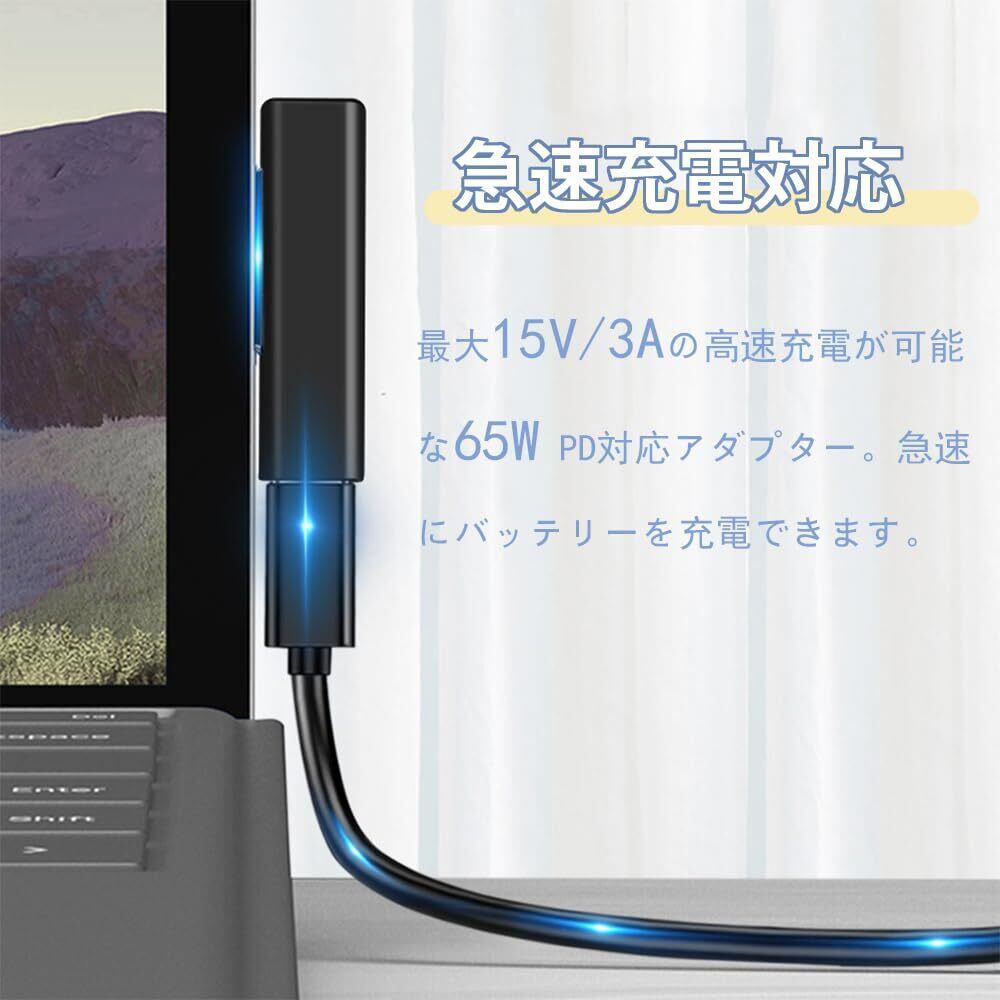 急速充電アダプタ アダプター 変換 軽量で携帯便利 充電保護 コネクタ15V/3A PD出力をサポート65W PD Type-C充電器必要 Surface Pro 6/5/4/3 Laptop 1/2/3/4/5 Book用