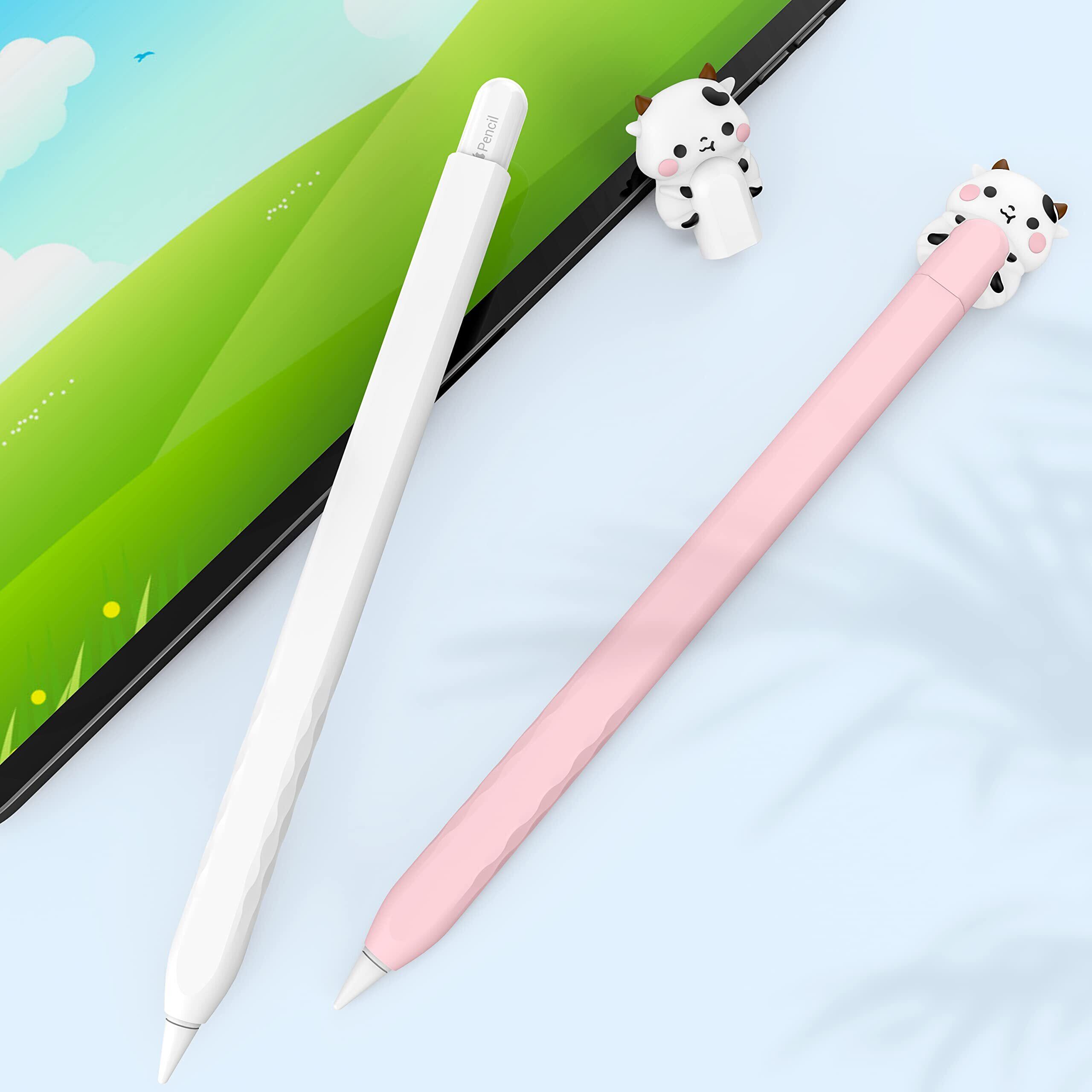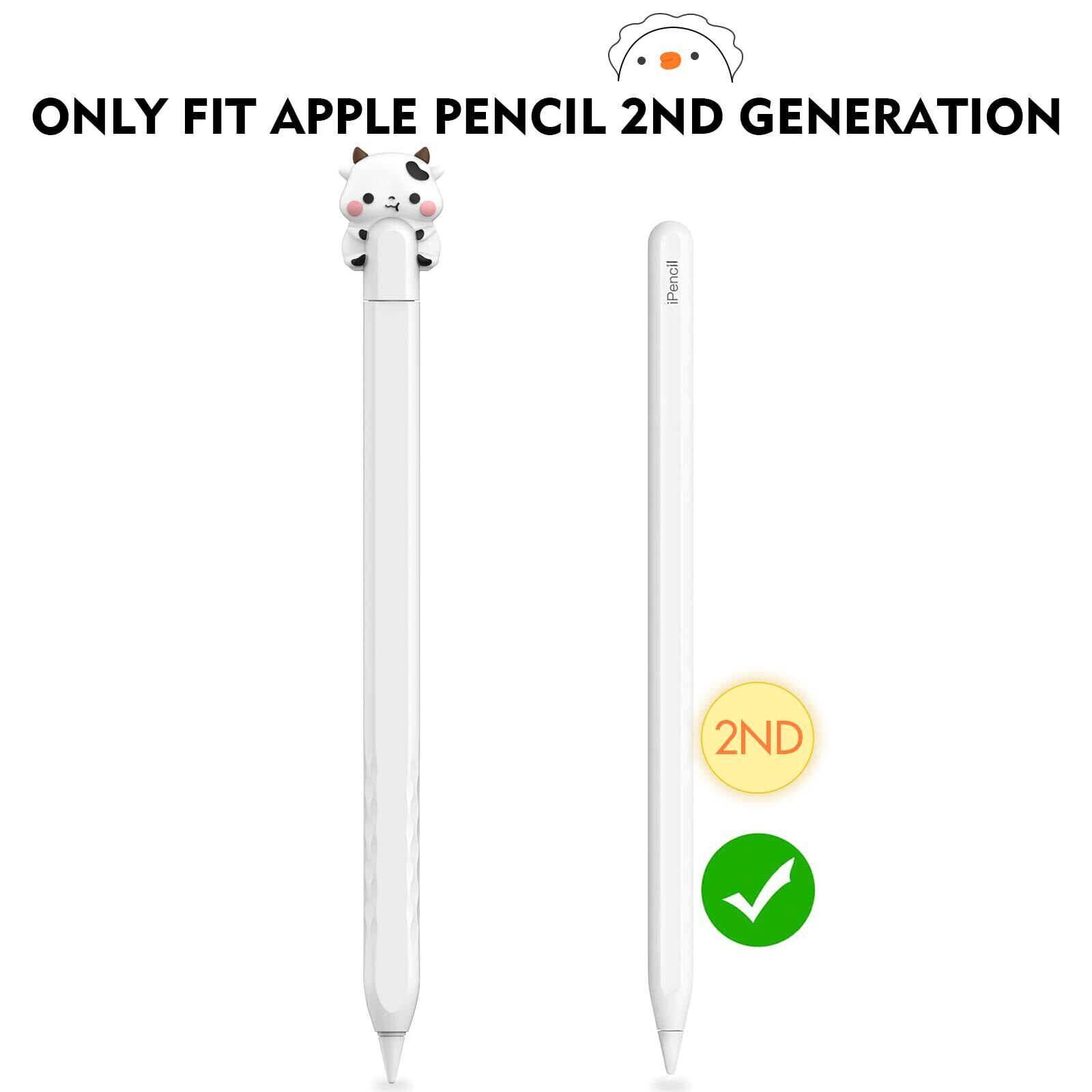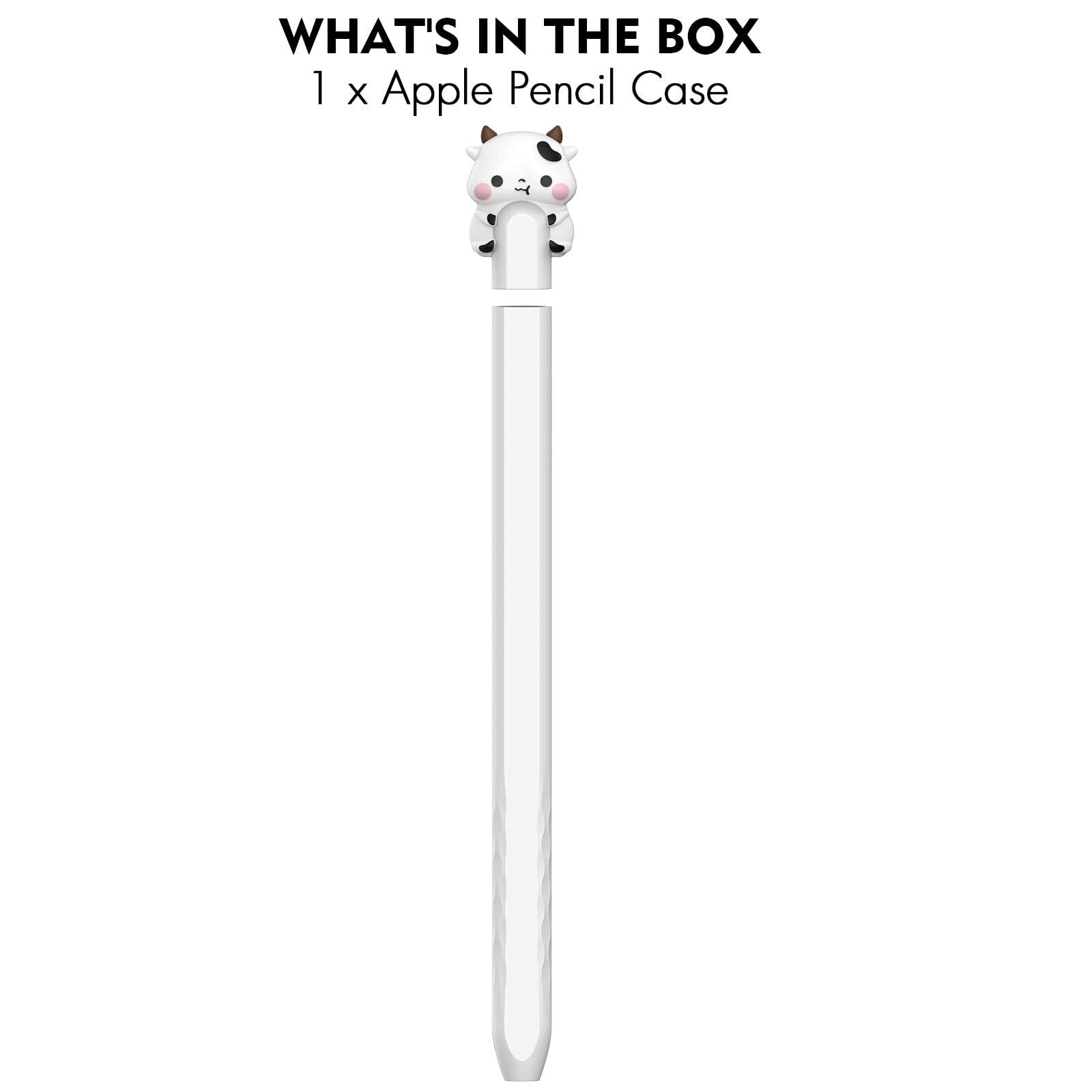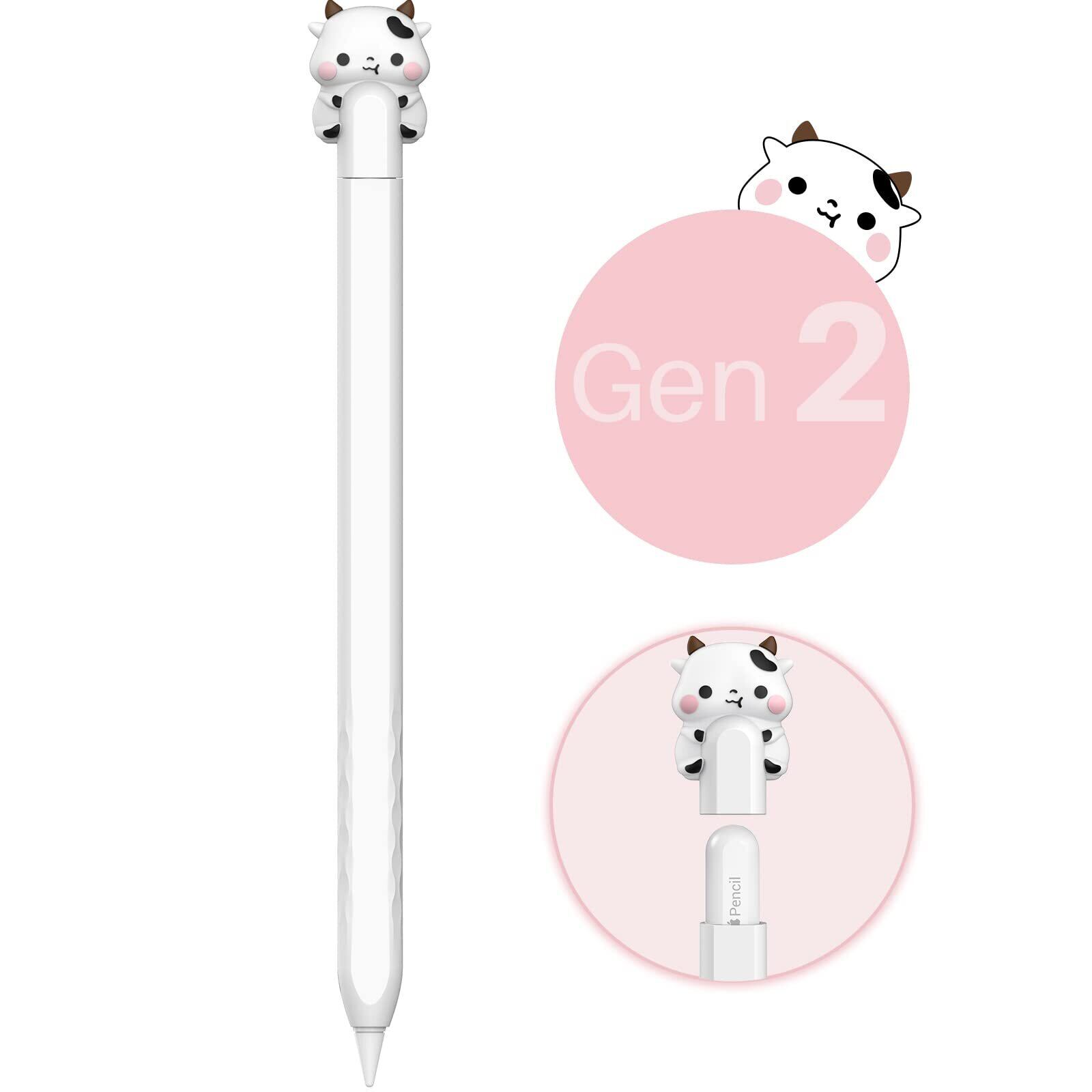 NIUTRENDZ 超薄型 Apple Pencil 第2世代 カバー シリコン保護ケース かわいい小さな牛のデザイン【ダブルタップとワイヤレス充電に対応】 (しろい, Apple Pencil 第2世代)
