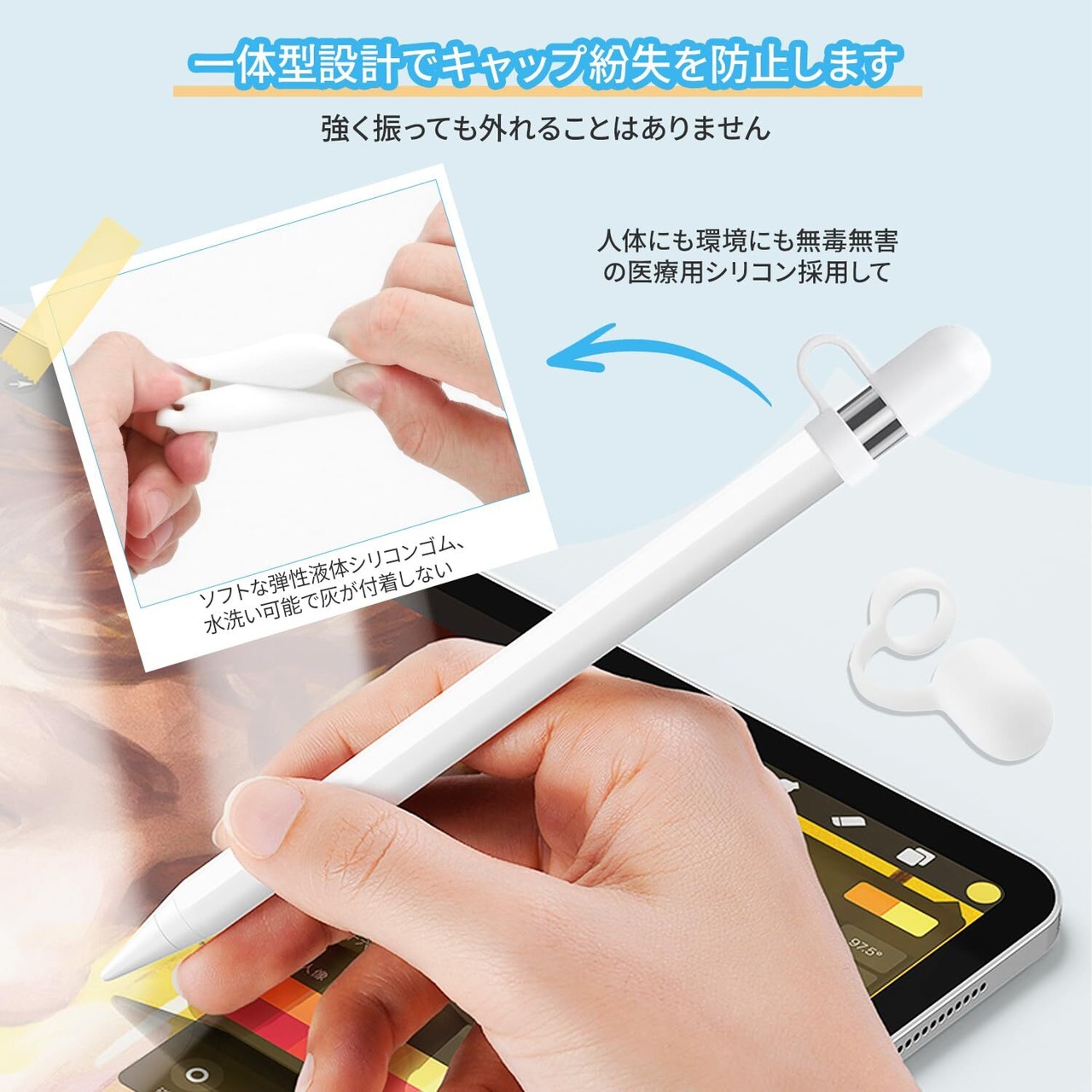 ■Apple Pencilを大切に保護するアイテム!VEAGIAの交換用カバーは、Apple Pencil 第一世代に適応したデザインで、紛失防止ストラップが付属しています。シンプルでスタイリッシュなホワイトカラーは、どんなシーンでも浮くことなくフィットします!