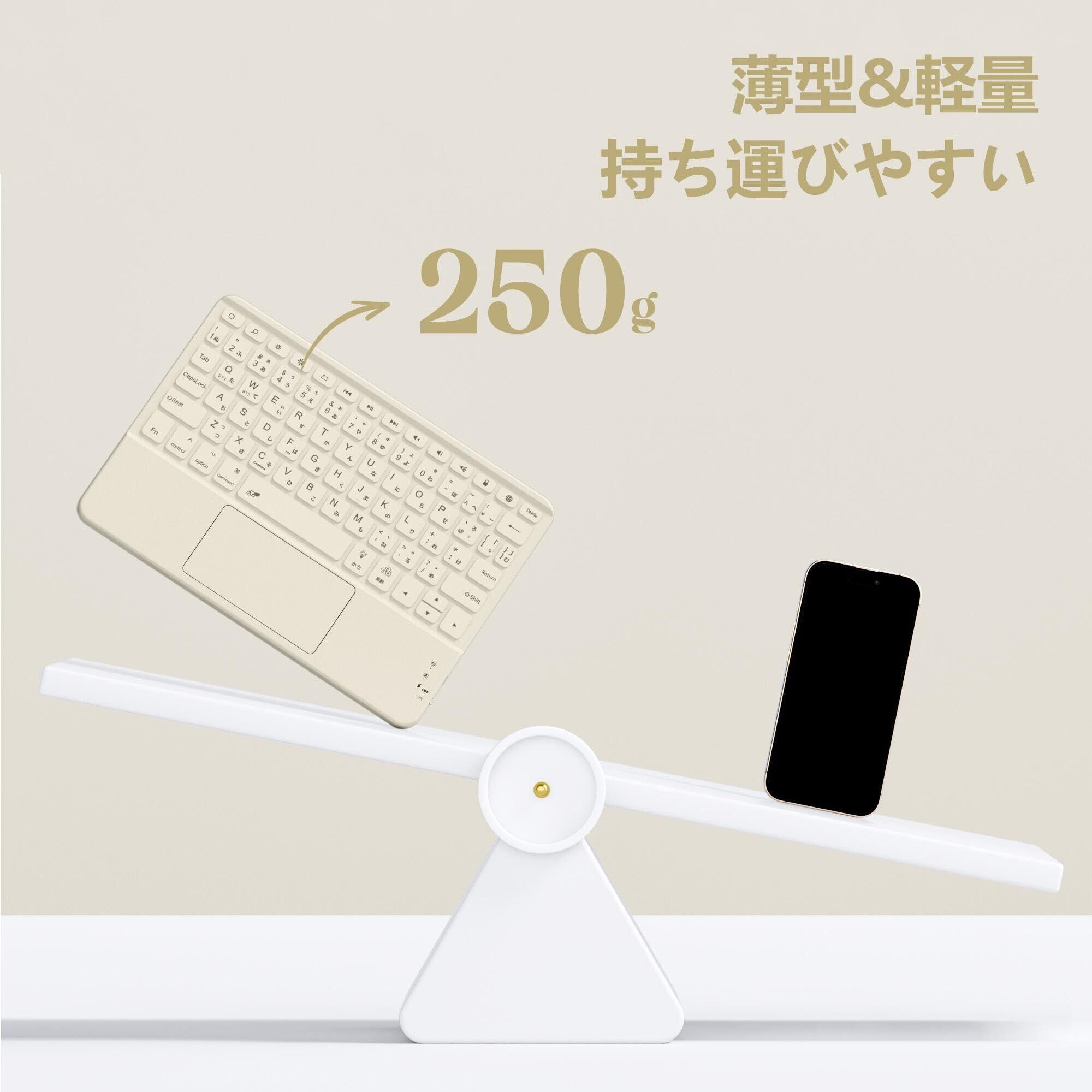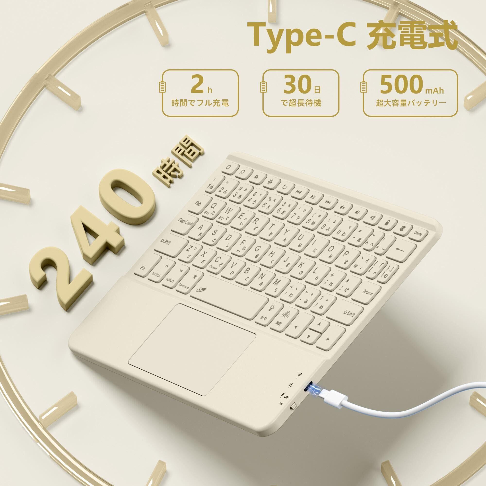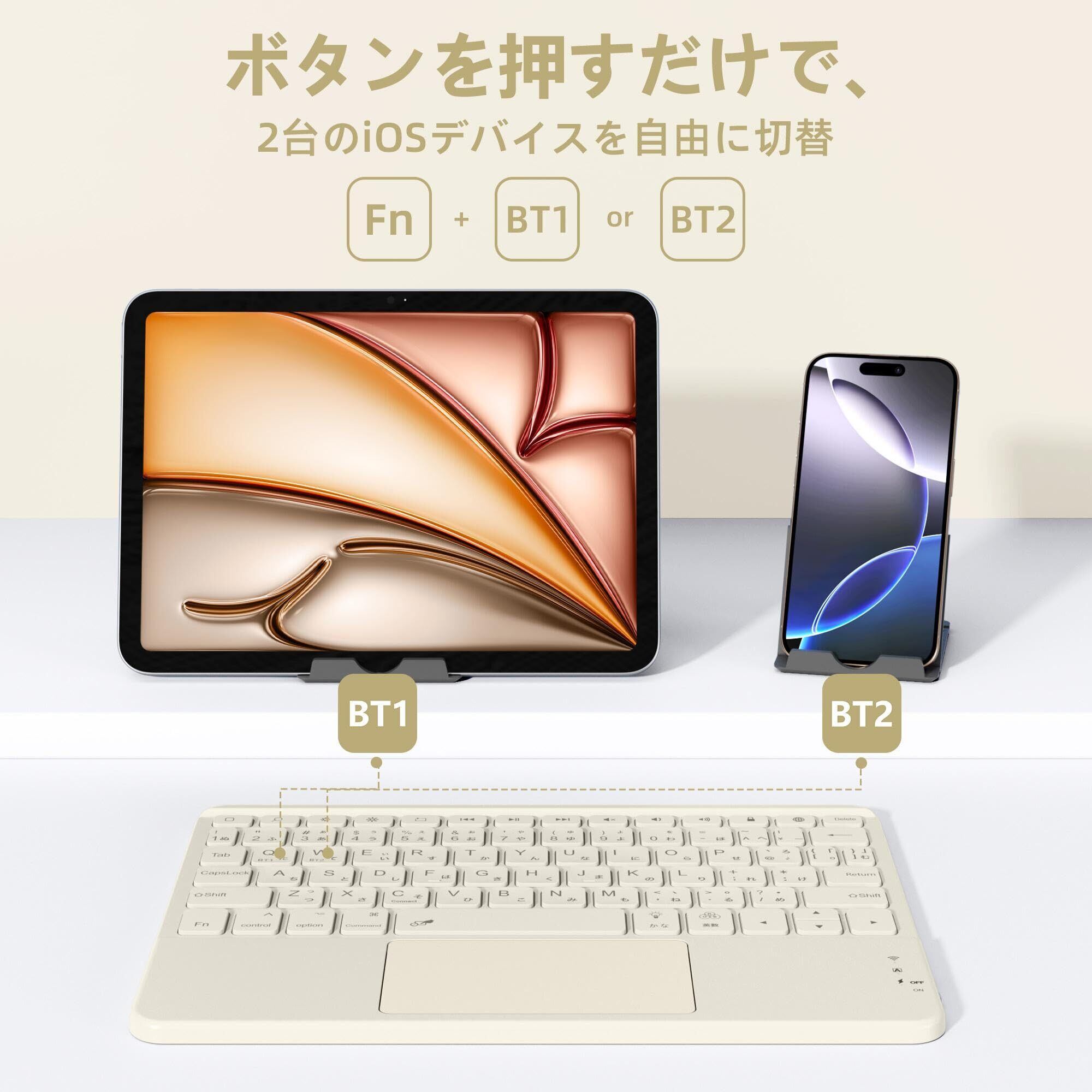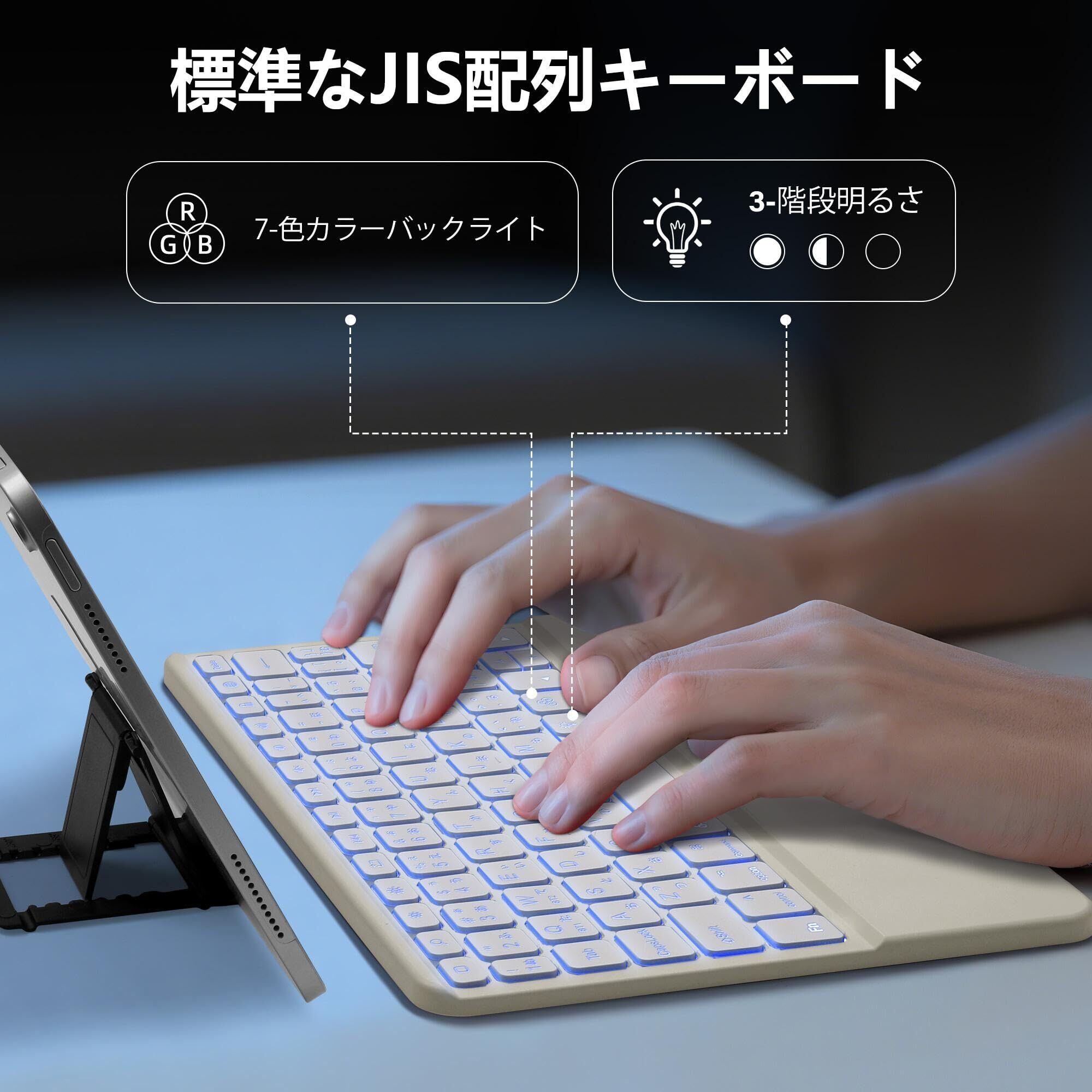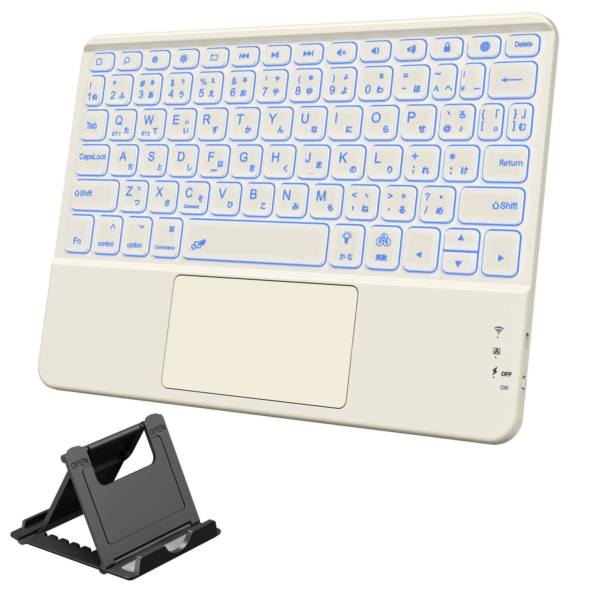 ipad用 キーボード- 7色バックライト Bluetooth JIS日本語配列 スタンド付き タッチパッド搭載 2台のiOSデバイス切り替え可能 タブレット キーボード iPad/iPhone対応 無線 静音 Type-C充電式 薄型 軽量 日本語説明書付き 技通マークを取得済み