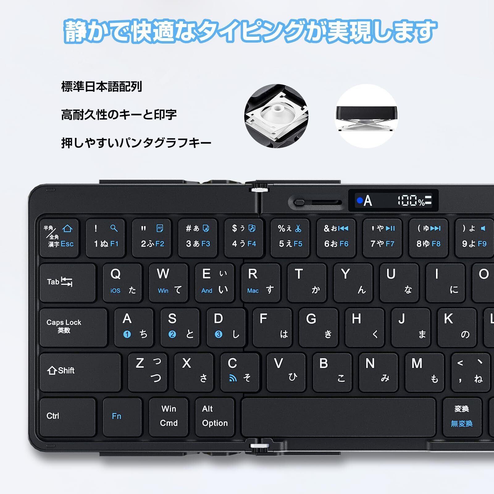 Ewin キーボード bluetooth 折り畳み ワイヤレス 日本語配列 3台デバイス切替接続可能 ipad/iphone/Windows/Android/Mac/Googleなど対応 タッチパッド付き LED電量残量表示 フルキーボード 無線 薄型 持ち運び コンパクト アルミ合金 JIS配列 USB-C充電式 ケース付属