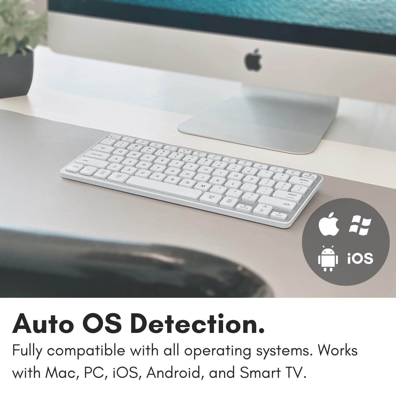 【すべてのデバイスに対応する1つのキーボード】自動OS検出機能により、当社のBluetoothワイヤレスキーボードは、Mac、PC、iOS、iPadOS、Android、SmartTVなど、 日本向けに設計された日本語環境入力キーボードでiPad、iPhone、そして さまざまなデバイスおよびオペレーティングシステムに完全対応します。