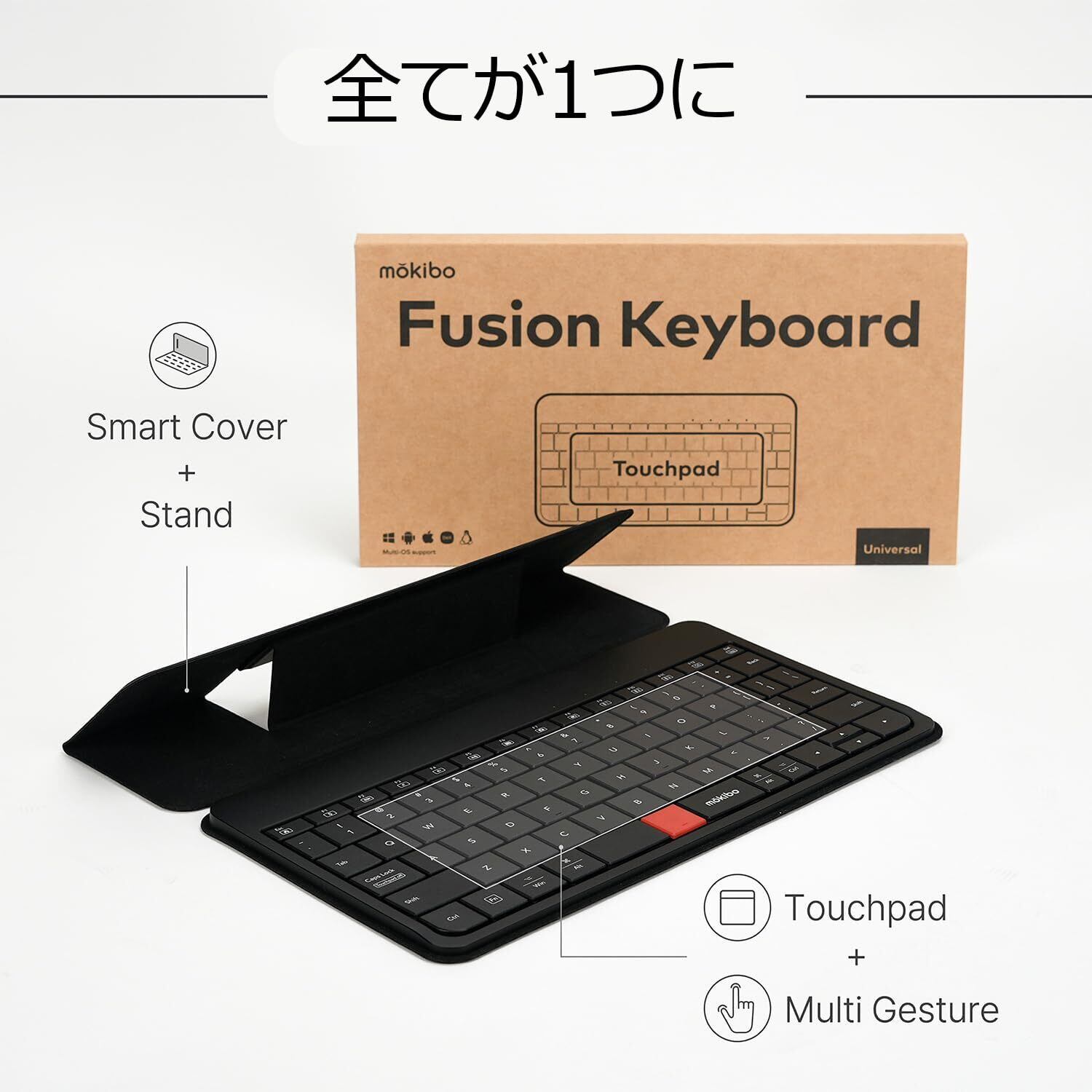 マルチタッチジェスチャーはそれぞれのOSに最適化されていて、右クリック・左クリック、マイクミュート、カメラ機能オフ、拡大・縮小、その他の省時間で効率の良いモーションが可能です。典型的な小型キーボードよりも大きめのキーキャップのiPad・Androidデバイス用モキボフュージョンBluetoothキーボードなら、テンキーよりも入力や処理を素早く行えます。