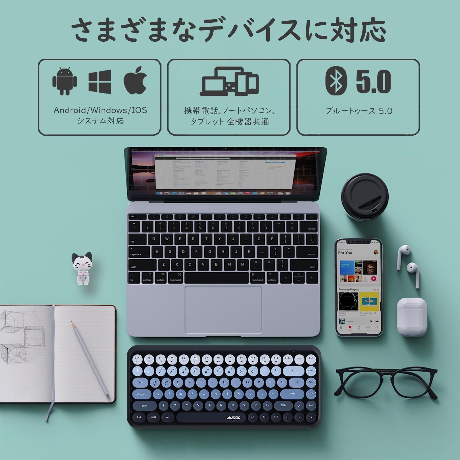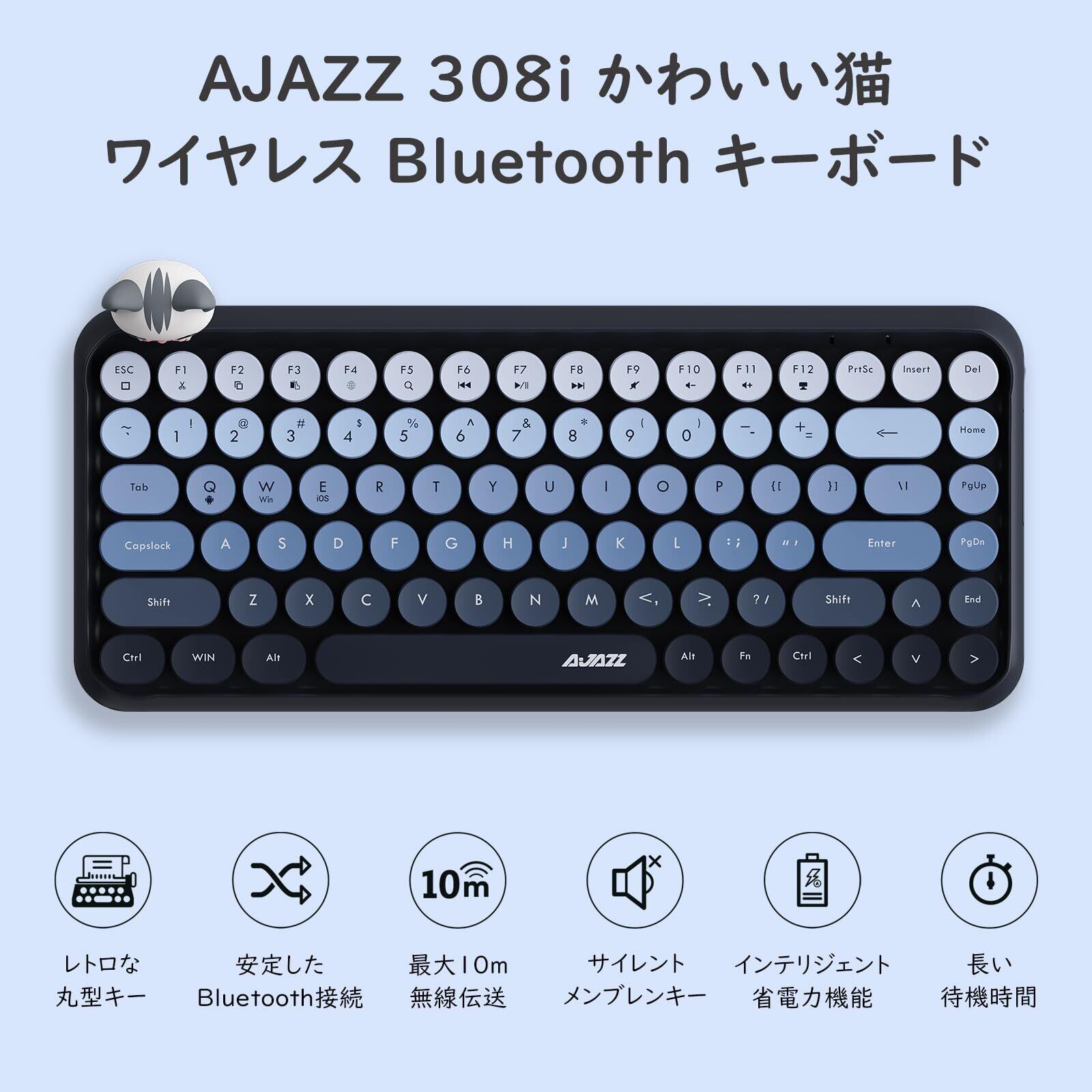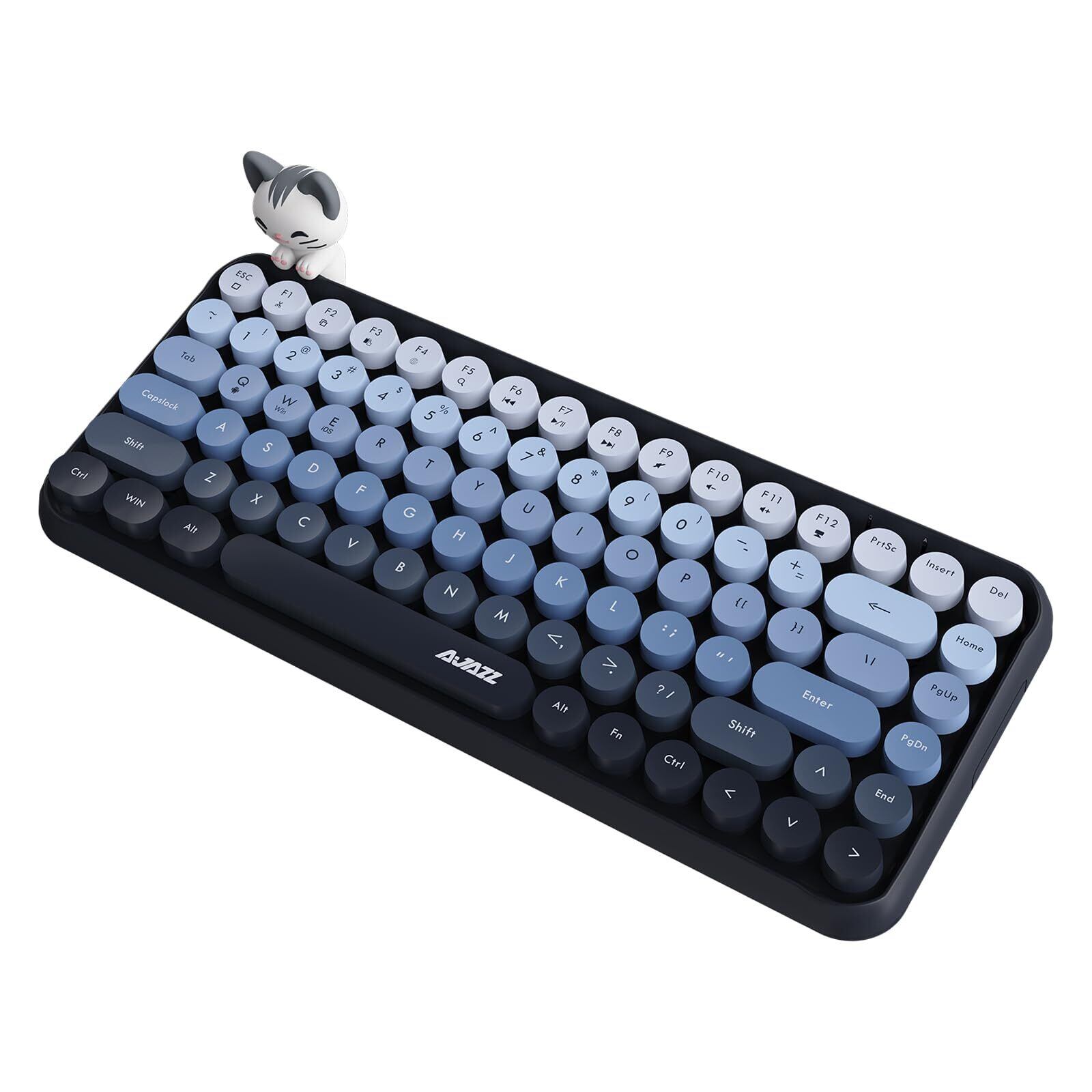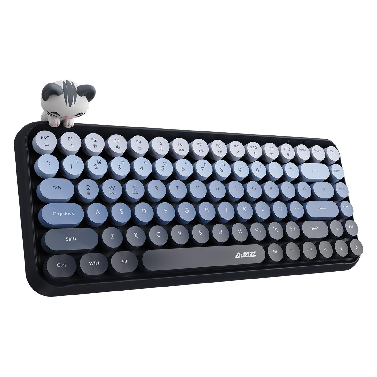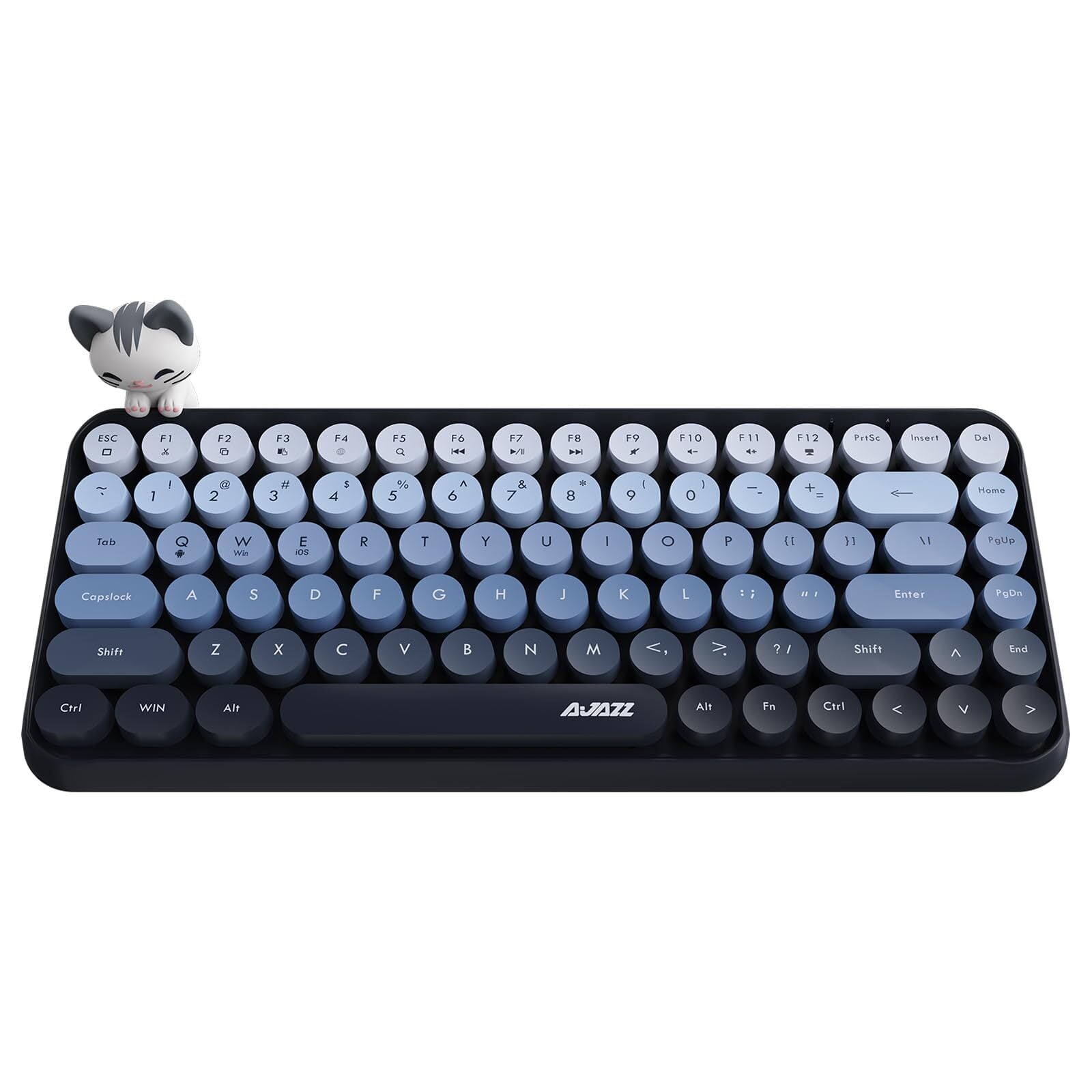 AJAZZ 308i タブレット用ワイヤレスBluetoothキーボード 磁気猫付き コンパクト84キー かわいい タイプライター風 丸型キーキャップ 女の子と子供向けのギフト 英語配列 (グラデーションブルー)