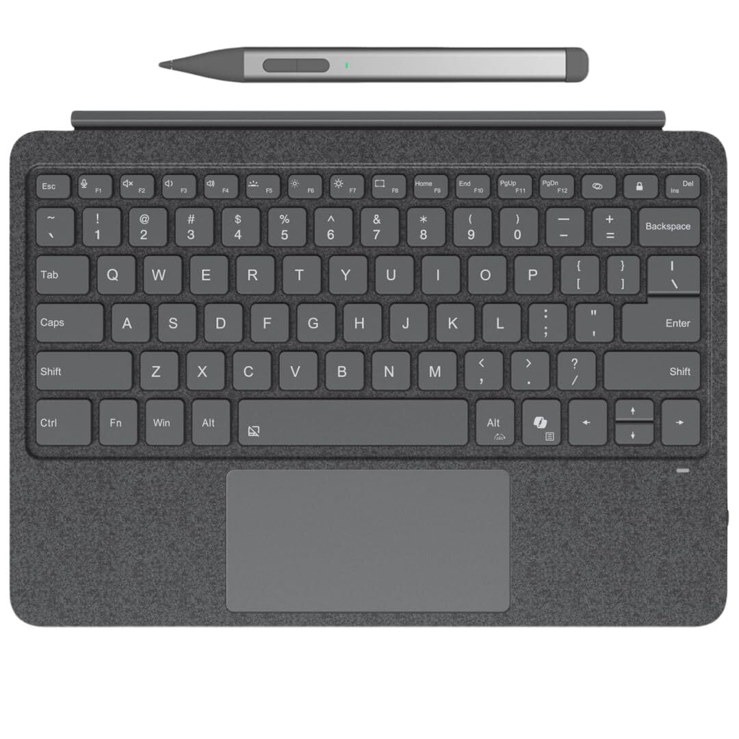 Surface タッチペン 付き Surface Pro 12インチ 2025年モデル用 キーボード 軽量タイプカバー 磁気吸着式 タッチパッド搭載 七色バックライト付き 薄型 分離式キーボード US英語配列 多角度調整 静音設計 (グレー+タッチペン)