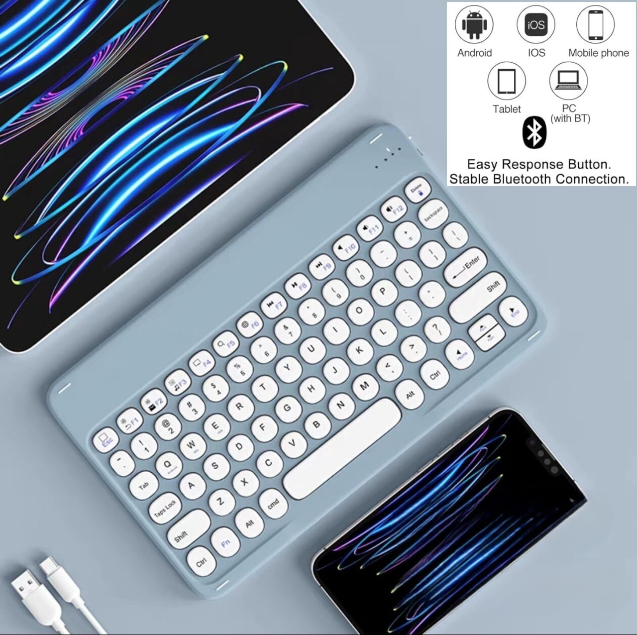 【脱着式 カラーキーボード】人気丸型キーキーボードはAndroid、IOS、WindowsシステムのiPadやPC、スマホにも使用可能で、ご必要に応じて対応できます。