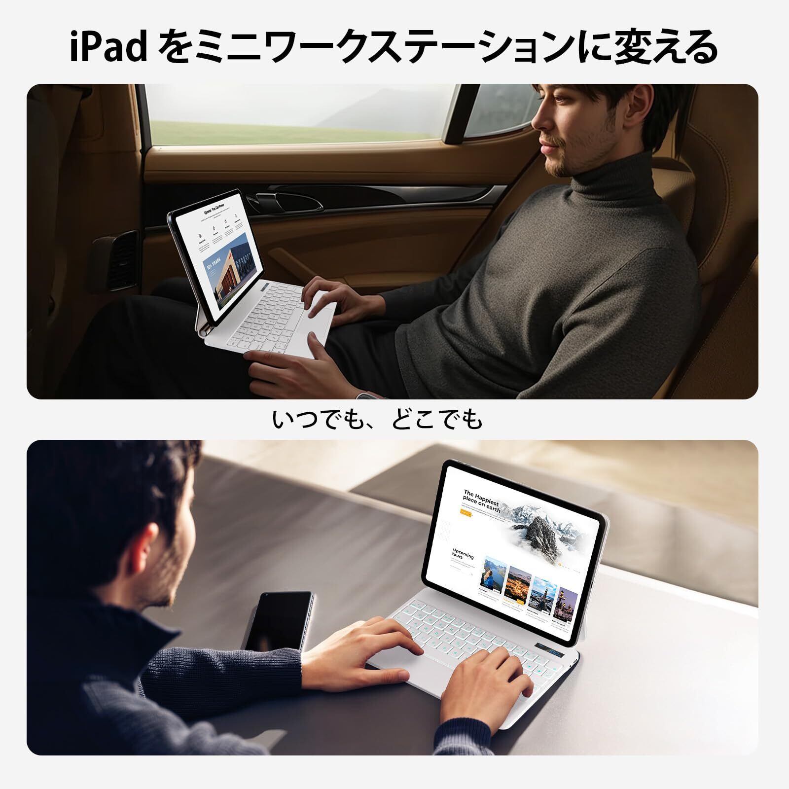 iPad A16 第11世代/第10世代用 磁気キーボードケース 軽量JIS日本語配列~磁気装着・マルチジェスチャートラックパッド・7 色バックライト・ショートカットキー・自動スリープ/起動機能付き~ ホワイト