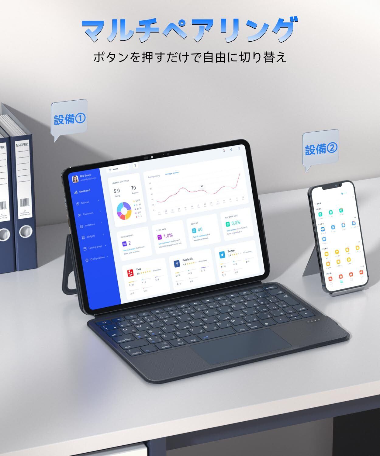 特徴 標準日本語配列, 横/縦置き対応, 超高精度タッチパッド搭載, 軽量, 静音